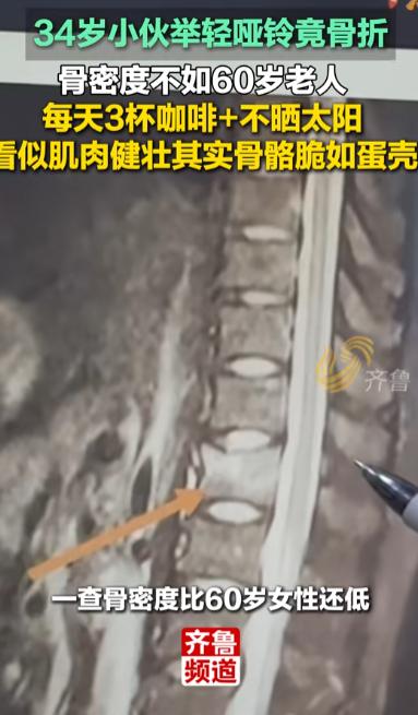 悲剧还是发生了!浙江,一男子经常健身,看着很健康,却在健身房举哑铃时,竟然骨折了!去医院一查,发现他的骨密度比多数60岁女性还要低,后来才知道,男子几乎不晒太阳,每天还要喝3杯咖啡!网友:涨知识了!