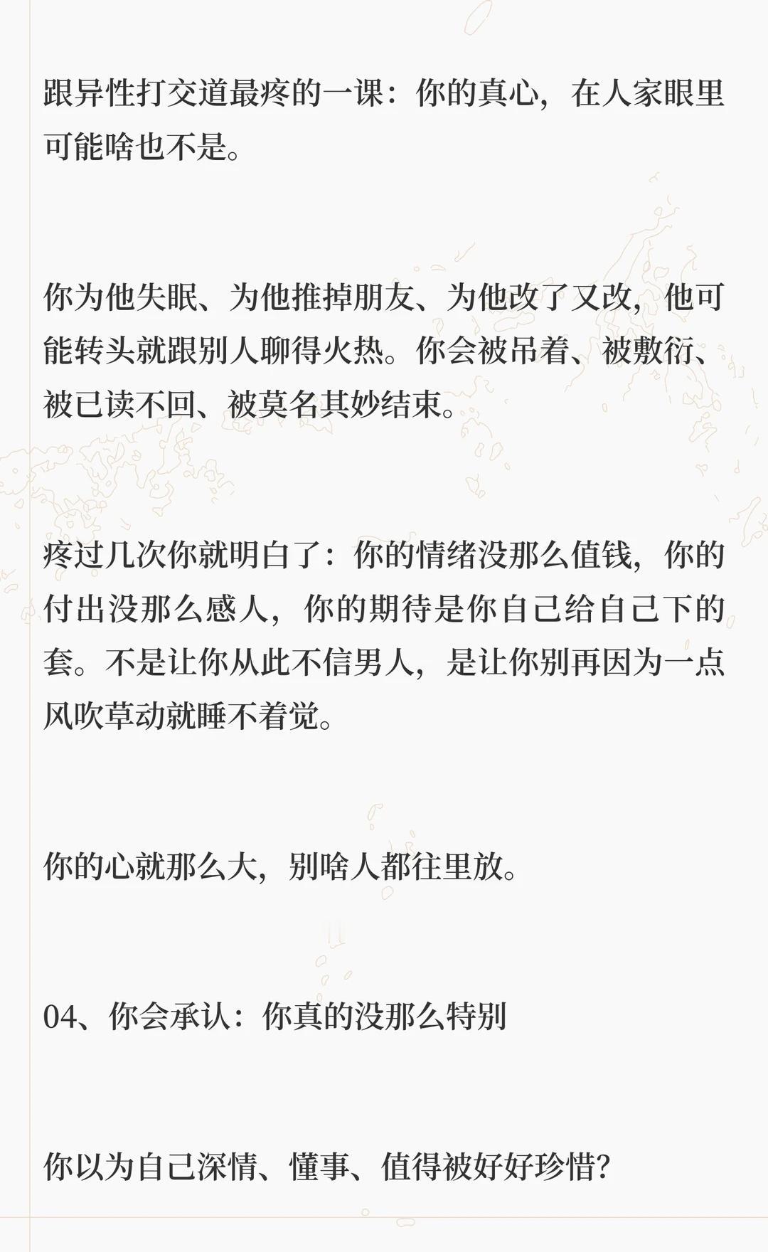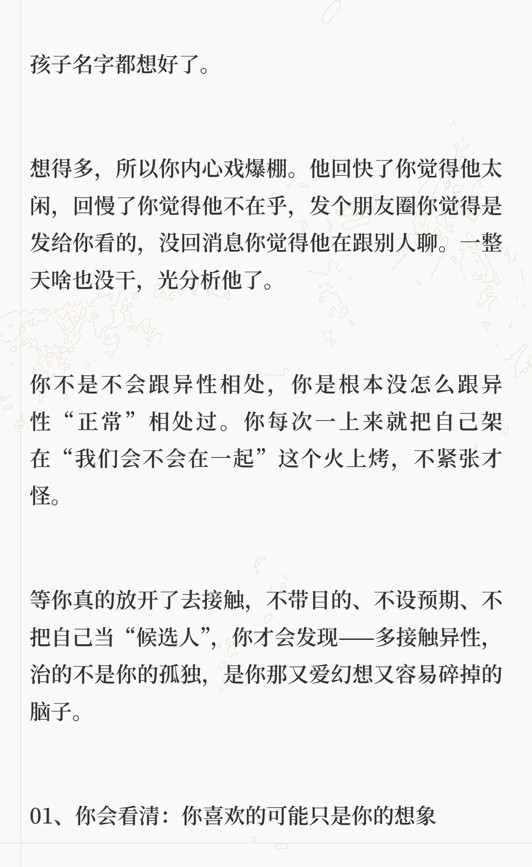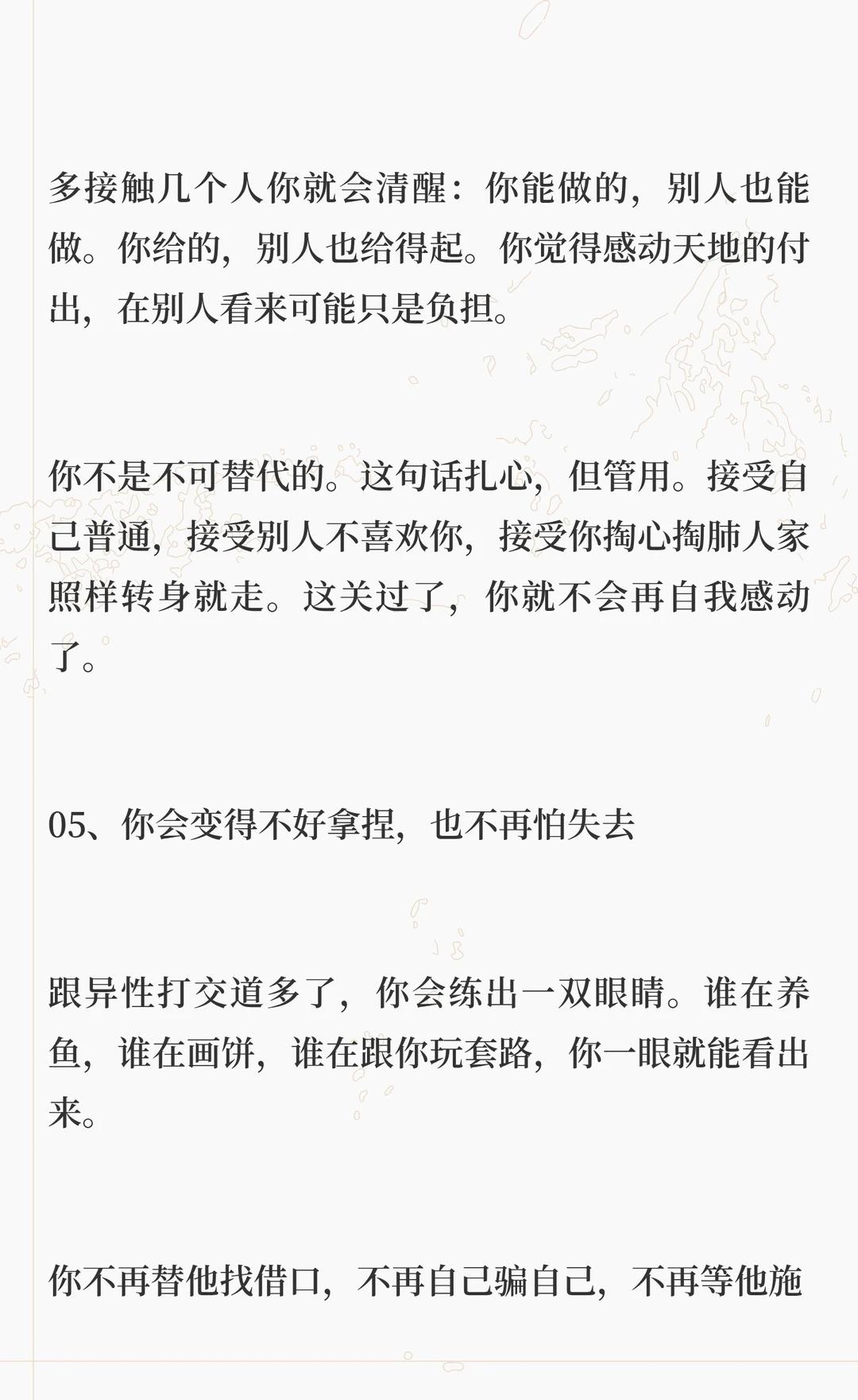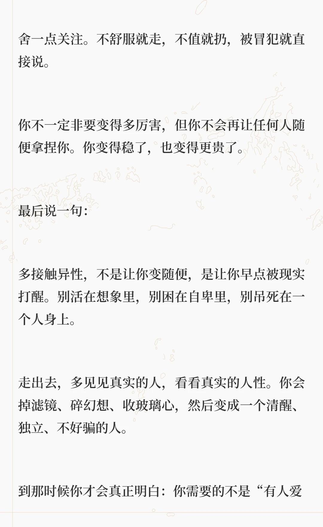 多接触异性,不是让你变随便,是让你早点被现实打醒。别活在想象里,别困在自卑里,别吊死在一个人身上。