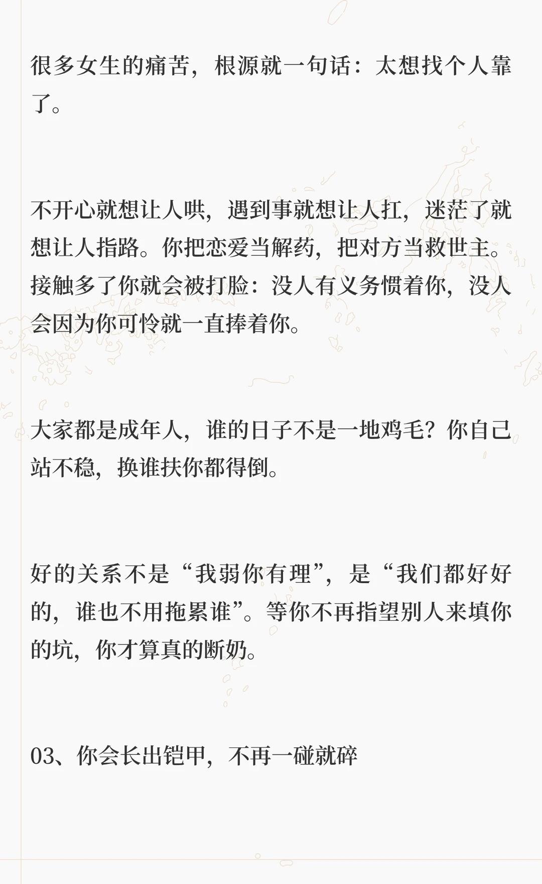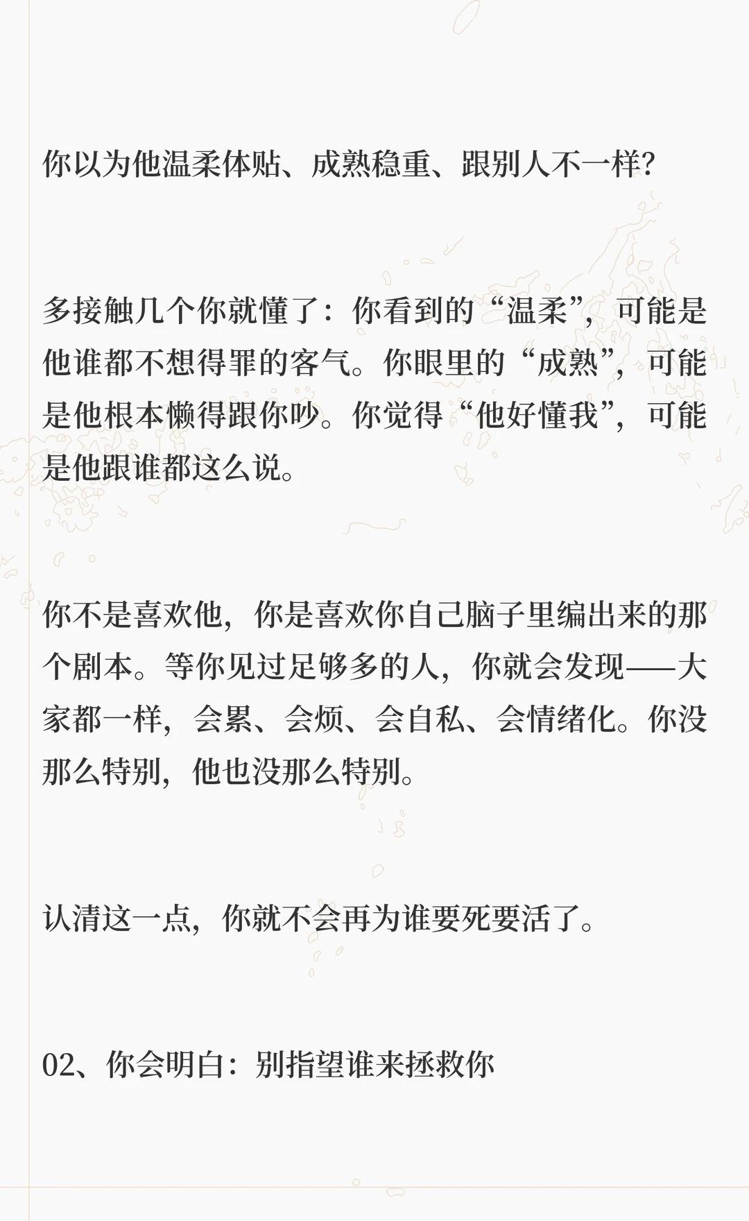 到那时候你才会真正明白:你需要的不是“有人爱你”,而是你再也不需要靠别人的爱来证明自己值得。