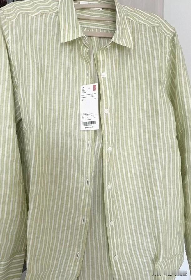 溜达到优衣库,看见一件亚麻衬衫,细条纹的,我一眼就喜欢上了。麻料穿着舒服,条纹也清爽,正好缺这么一件。