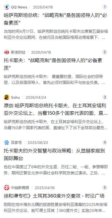 谁也没想到,哈萨克斯坦总统托卡耶夫,居然在国际大场合上,当着150多个国家代表的面,说出了一句没人敢说的大实话,直接扯下了当下全球政坛最危险的一块遮羞布。他在土耳其的论坛上挑明了:现在各方较劲,最缺的底线,就是“保持克制”。