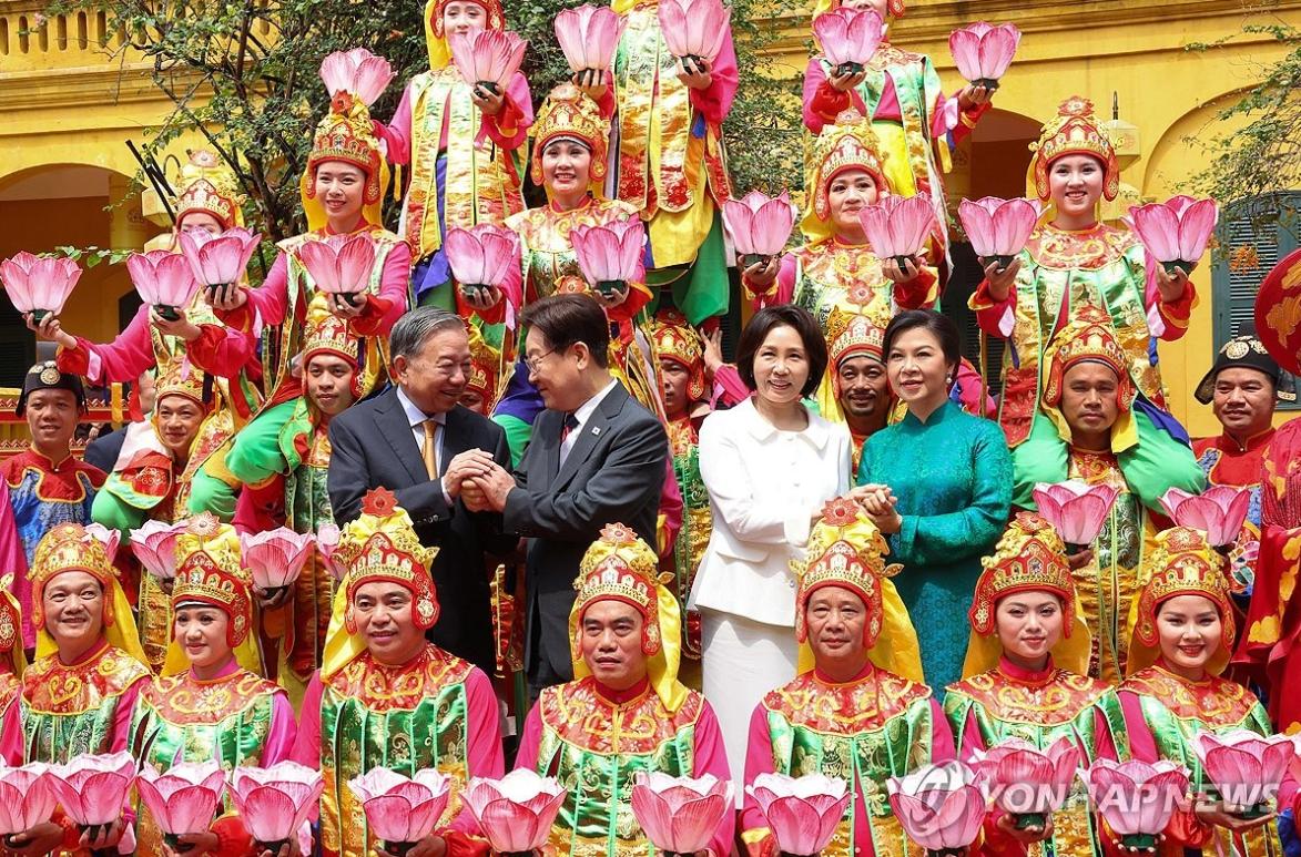 韩国总统与夫人金惠景在越南看演出!4月24日李在明出访越南最后一天,没有什么正式