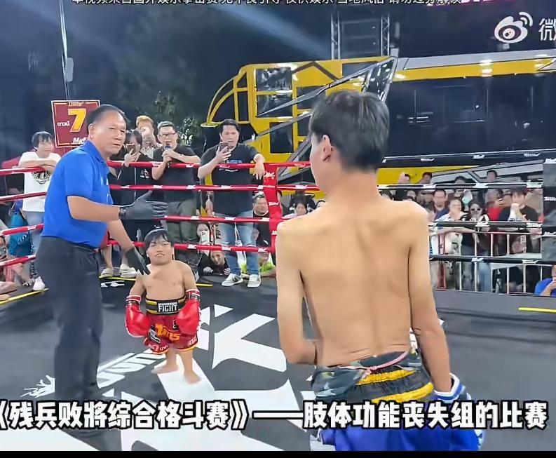 残疾人格斗大赛,你绝对想不到泰国人竟然办出如此丧心病狂的比赛。这个比赛的名称叫残兵败将综合格斗大赛,竟然还有品牌冠名,下面有一帮围观的吃瓜群众。这个比赛真的是找了一帮身体智力身高等方面有残缺的残疾人,组织他们上场比赛。说是比赛,其实这些人压根就不可能有正常人的动作。看他们笨拙的样子,在台上连站都站不稳,每次挥一拳踢一脚,都可能来个四仰八叉。台下的看客们哈哈一笑,纯粹是把这帮残疾人当做动物园的猴子在玩耍,没有任何的尊严可言。可是这样的比赛在泰国却大受欢迎,主办方的说辞是,他们给这些残疾人创造了就业机会,为他为他和他们的家人带来了收入,让他们可以自食其力。不成为社会的负担。