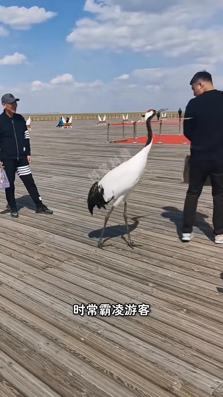 成年后的丹顶鹤脾气暴躁且战斗力强悍,你看它凭借一招白鹤亮翅就能打的动物园里的老虎毫无还手之力,并且还仗着国家一级保护动物的身份时常霸凌游客,专挑其脆弱的臀部下嘴给两脚兽搞突然袭击。