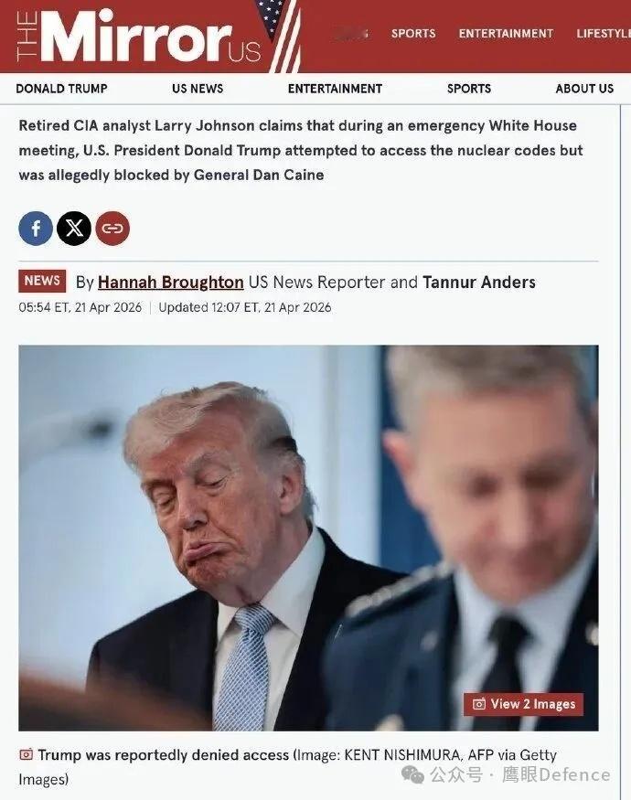 中东局势 稍早些,多家媒体报道称,前中央情报局分析师拉里·约翰逊透露,在白宫一次紧急会议上,特朗普要求获得核武器发射密码,但这一要求被参联会主席丹·凯恩上将拒绝。