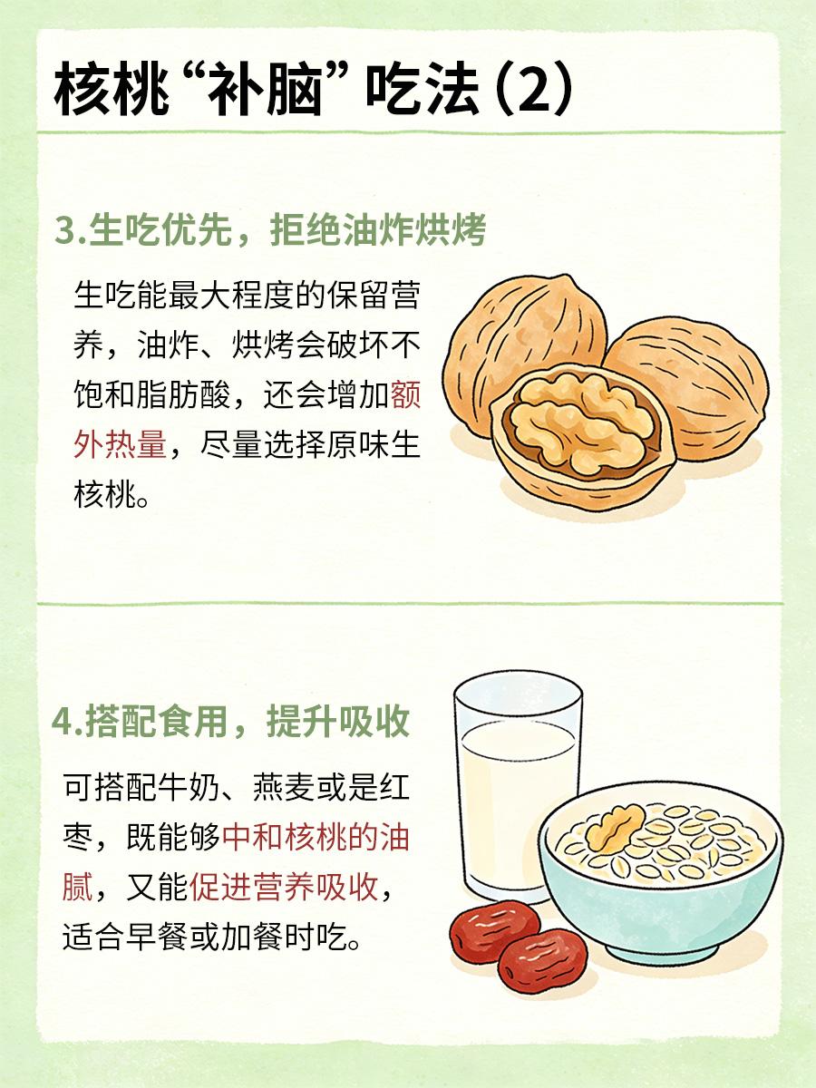 ☀️核桃补脑的关键在“正确吃”,掌握以上方法,避开过量、去皮、油炸等误区,才能让营养不浪费,长期坚持,助力大脑健康🧠。