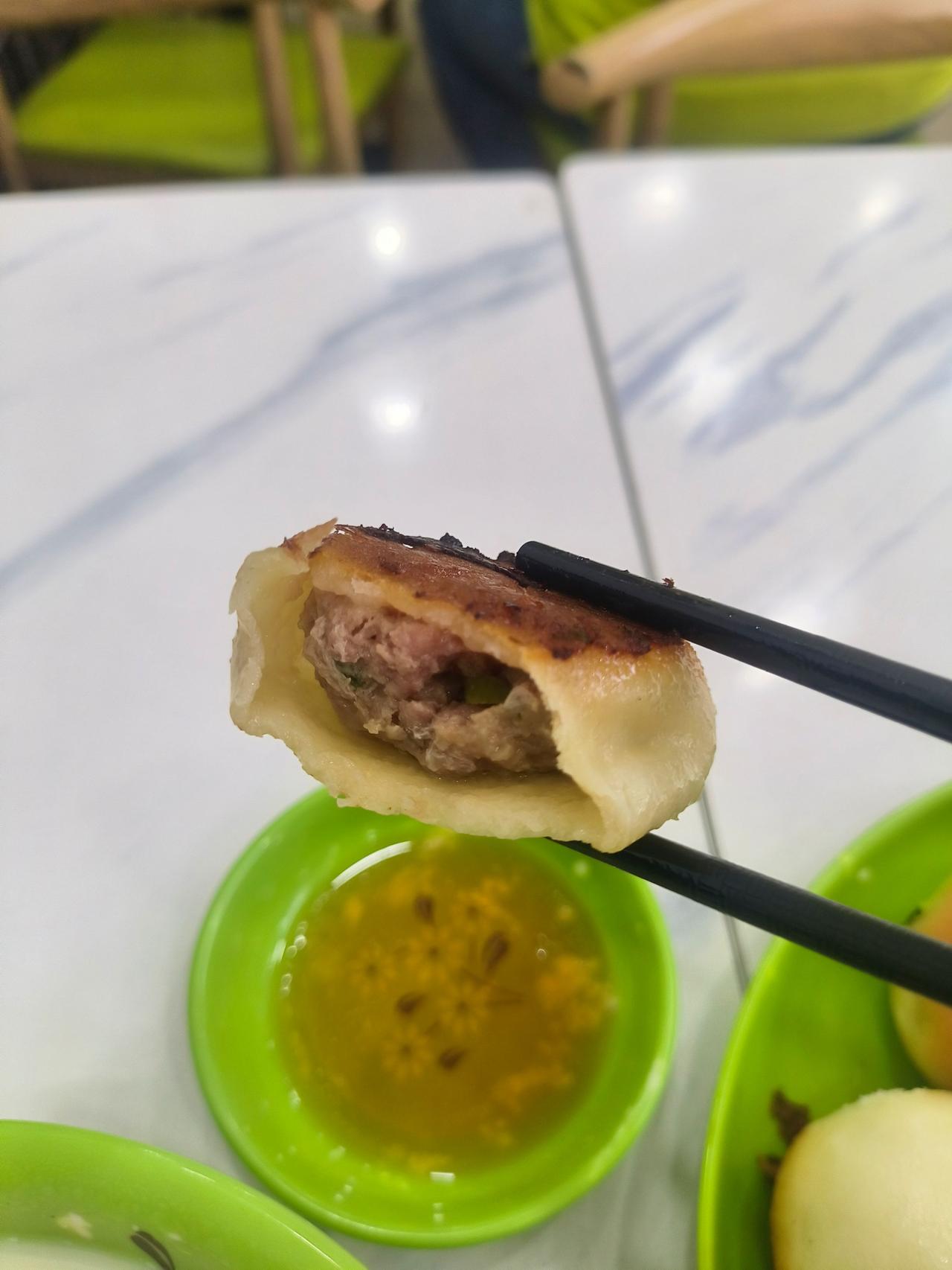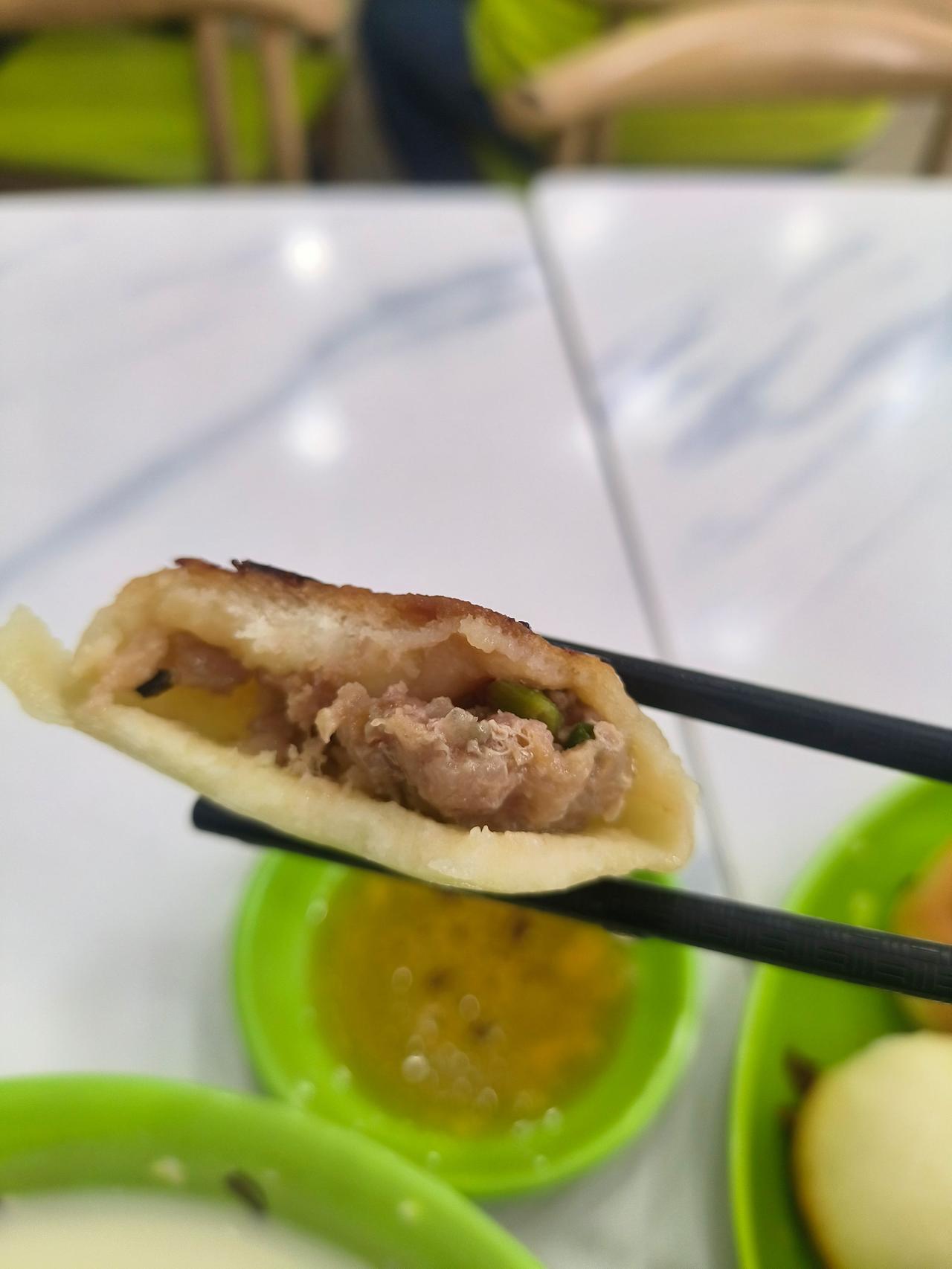 😋口味:生煎味道不错,首先皮不厚,也不粘牙。生煎的底也不硬不厚,带一点焦脆。肉馅的味道调的比较轻,我个人吃是稍微有一点淡。但肉馅还是比较新鲜的。