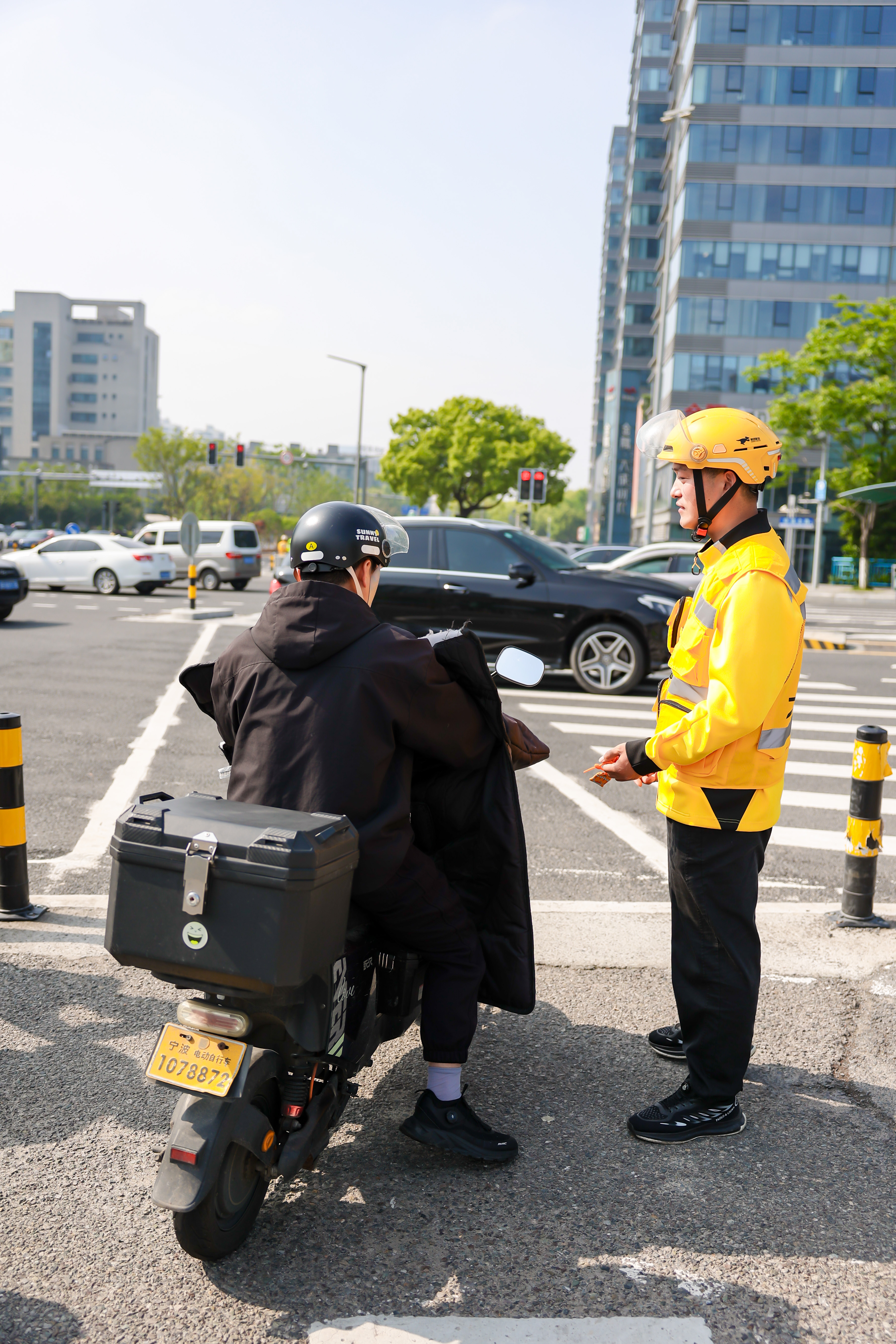 宁波街头骑手不送外卖送福袋 宁波这波太暖了!美团骑手暂搁订单,把安全等灯的叮嘱塞