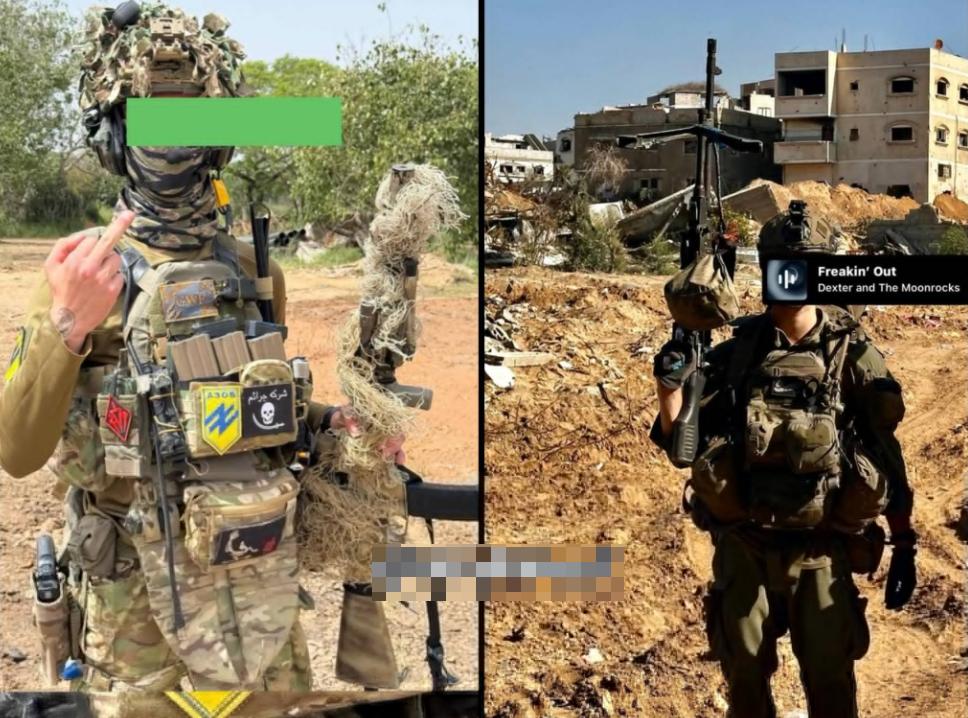 并排展示的两张照片,据称照片中的是同一个人:一张身穿亚速旅的制服,佩戴臂章并做出竖中指的手势;另一张则身穿以色列国防军的装备,置身于加沙的废墟之中,配文称此人从“新纳粹亚速旅”摇身一变成了“加沙的以色列国防军恐怖分子”。
