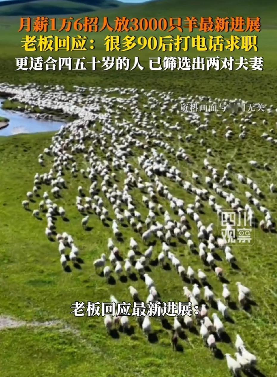 内蒙古,男子想找人管理牧区3000只羊,他开出月薪1万6千元,很多90后打电话要