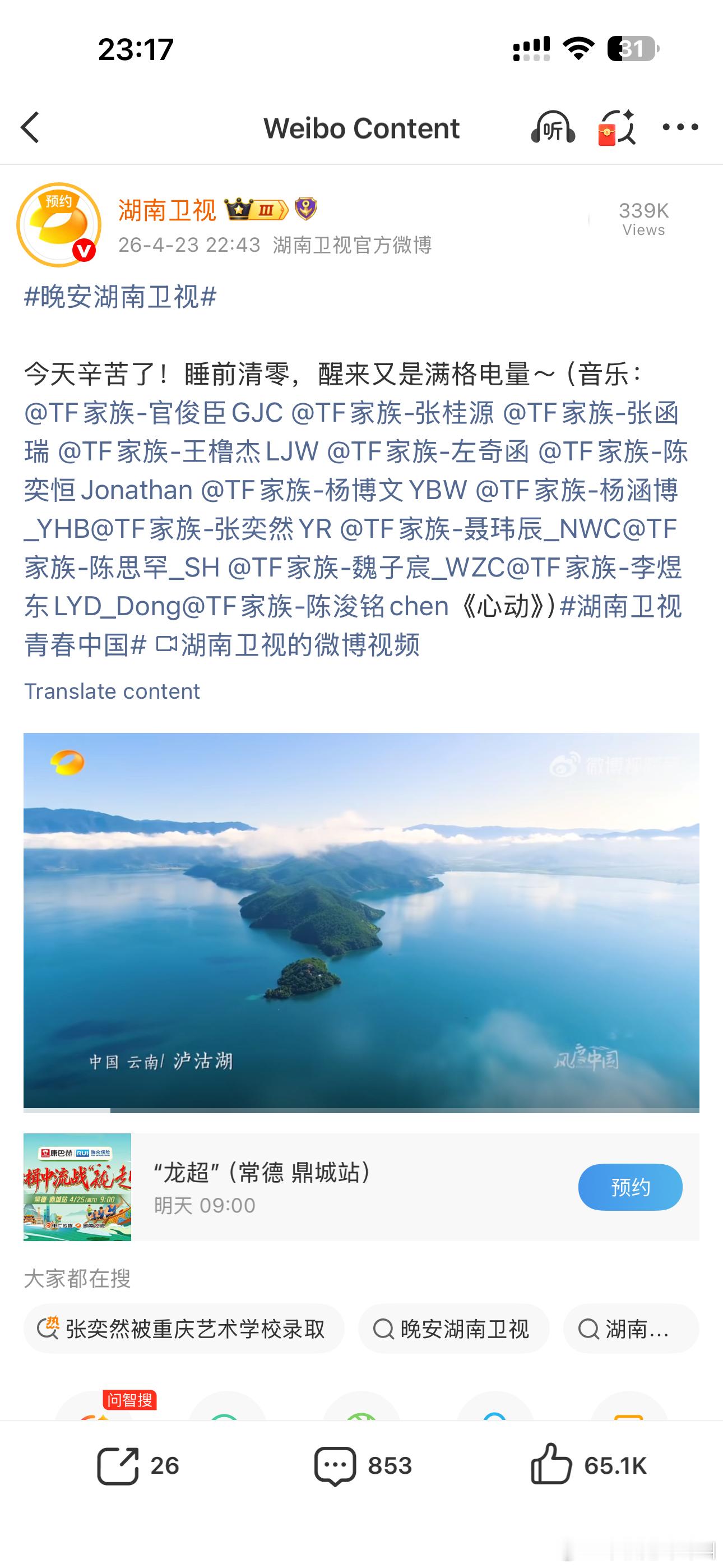 我就特别疑惑,然后去湖南卫视官博看了一下。