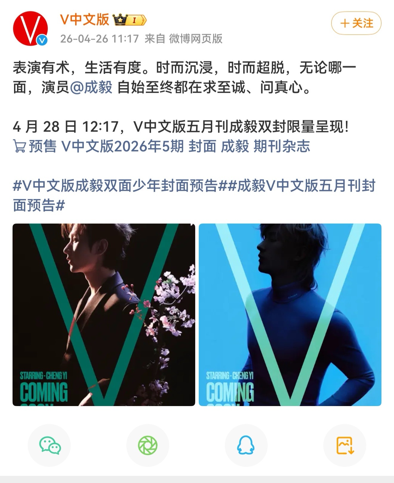 终于抢到杂志啦,成毅《V》中文版五月刊双封太惊艳了,全新风格全新突破,镜头表现力