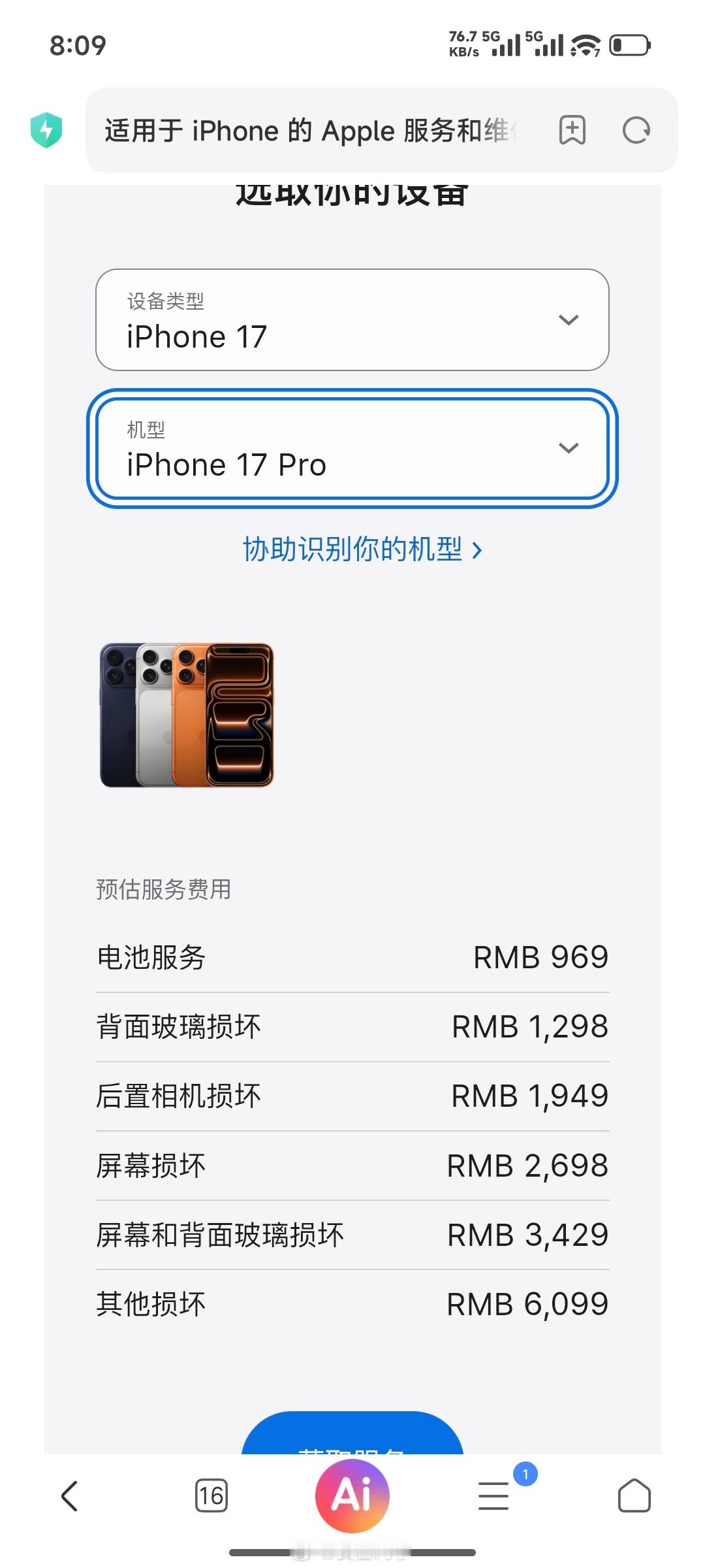 要是苹果,比如iPhone 17 Pro,官方电池900多块钱,那确实悠着点用!