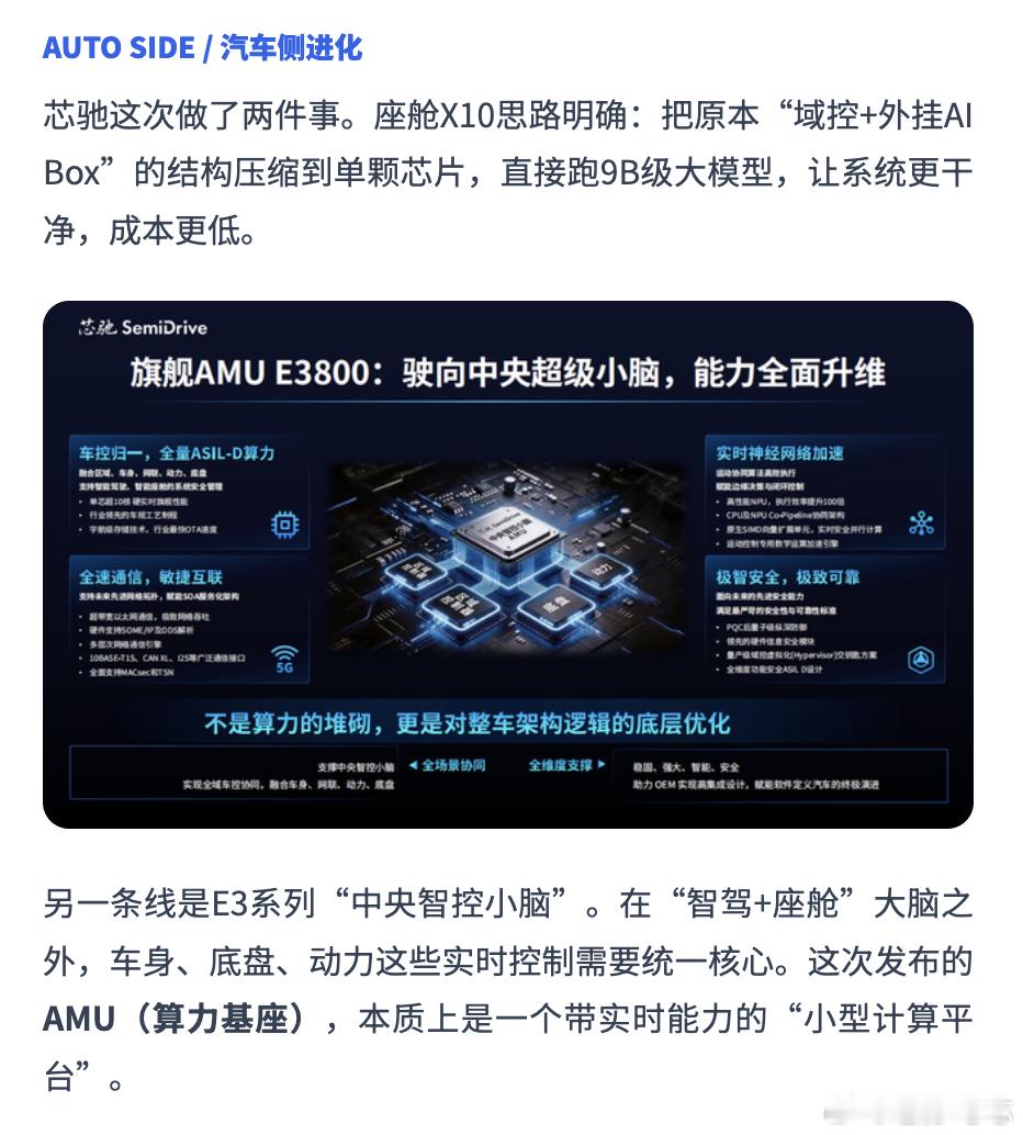 行业风向迎来转变,汽车高端芯片体系开始反向外溢,从行驶智能迈向通用智能,打造跨行业复用的车规级技术底座。