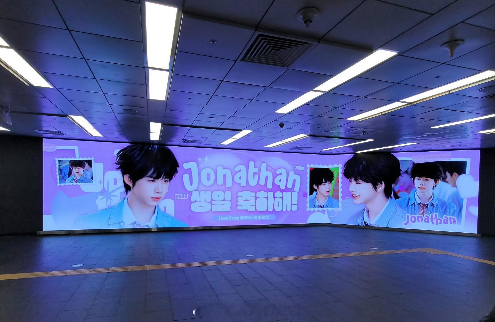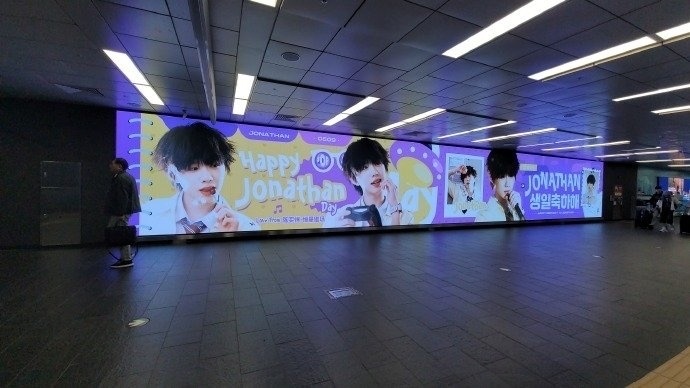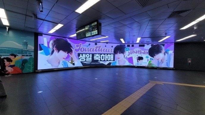 陈奕恒粉丝在韩国给陈奕恒承包了弘大地铁四连屏生日应援!!好漂亮好有排面!陈奕恒韩