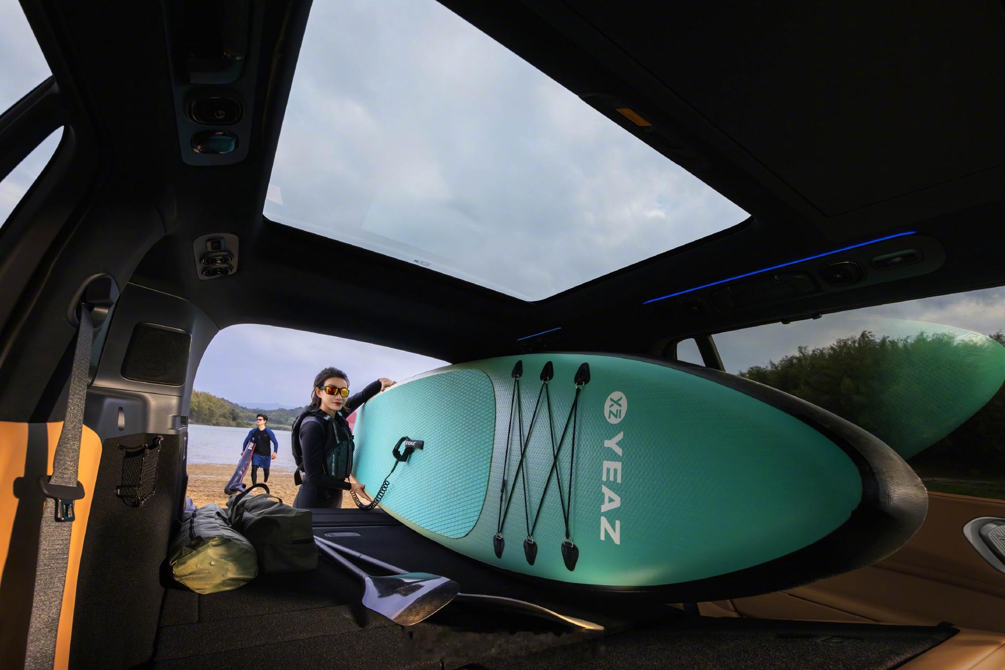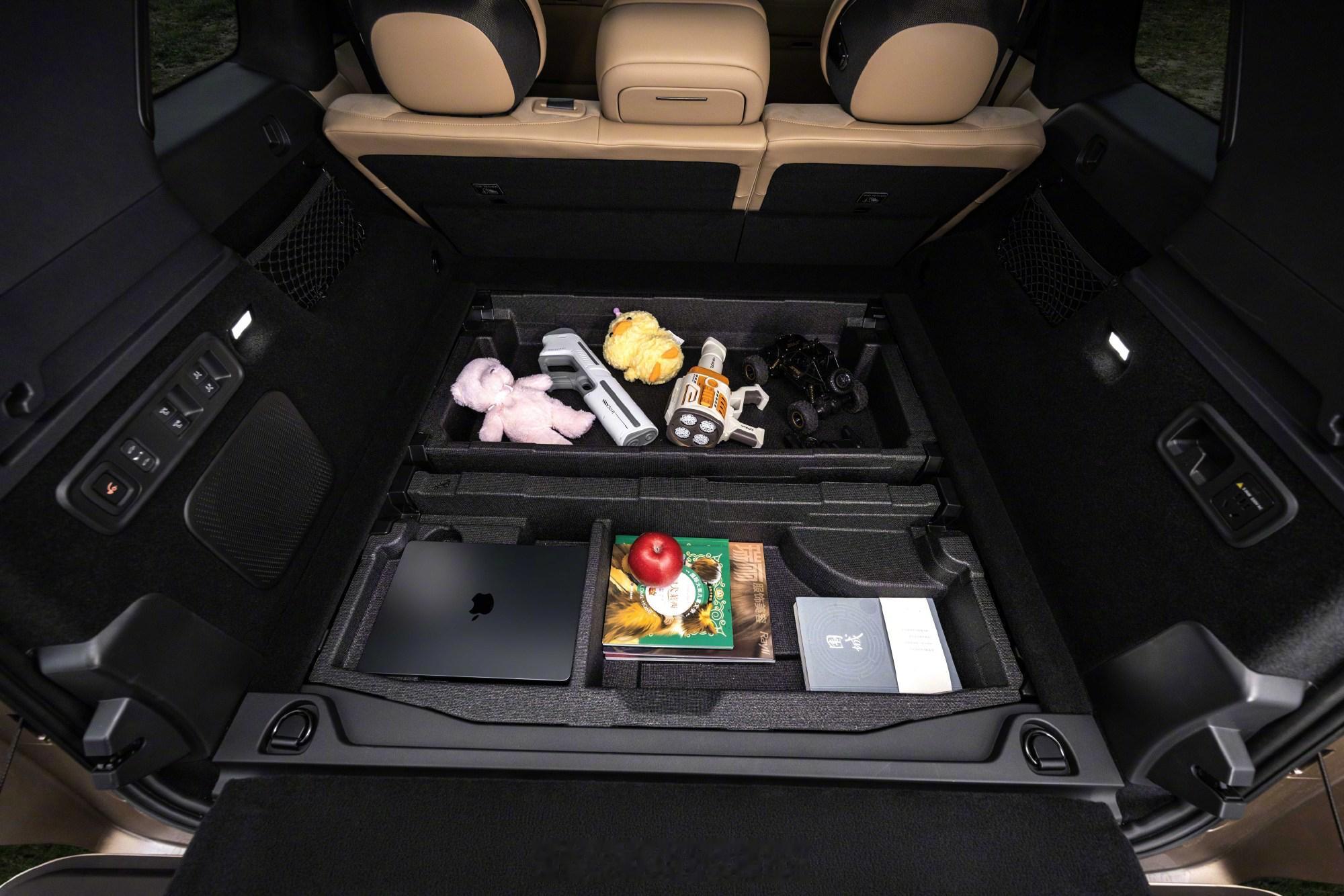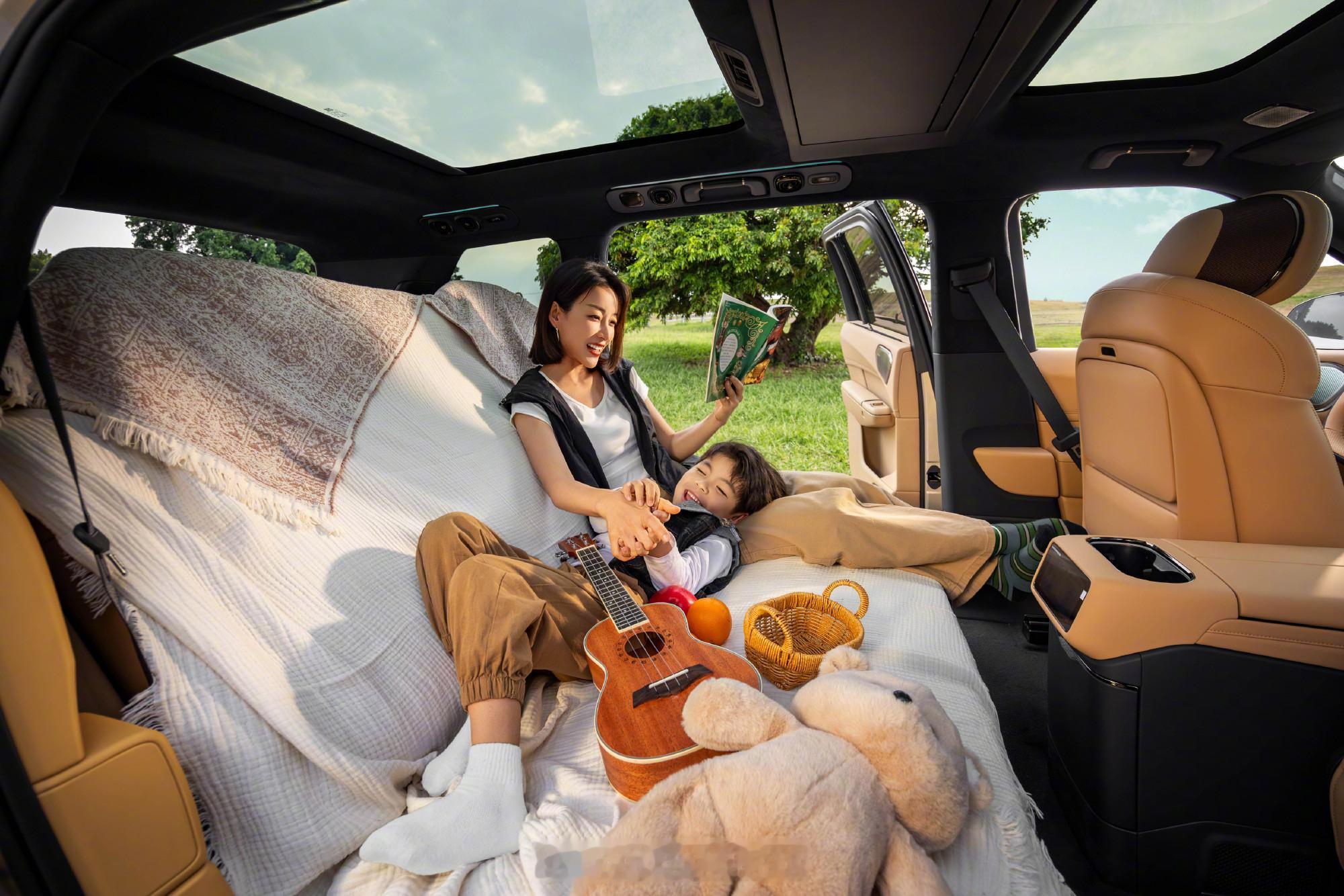 尾门也有狠活:中国品牌SUV首发电动无界天地门,基础容积1030L,最大1215L,比很多六座SUV放倒还大。座椅灵活组合,能变野奢大平层、天地餐桌、童梦空间、户外营地、观景台、私享巨幕厅,玩法太多。