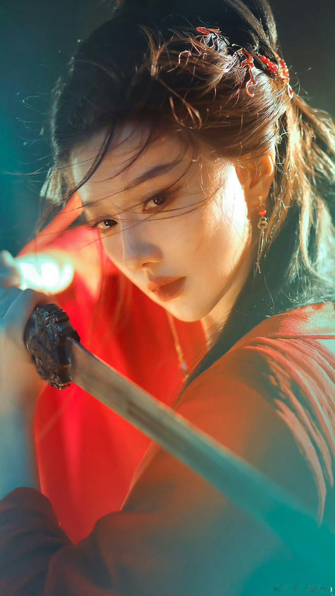 王鹤润红衣好有江湖侠气🌬️竹香绕红衣,剑气荡江湖,王鹤润化身竹林侠女,柔美与英