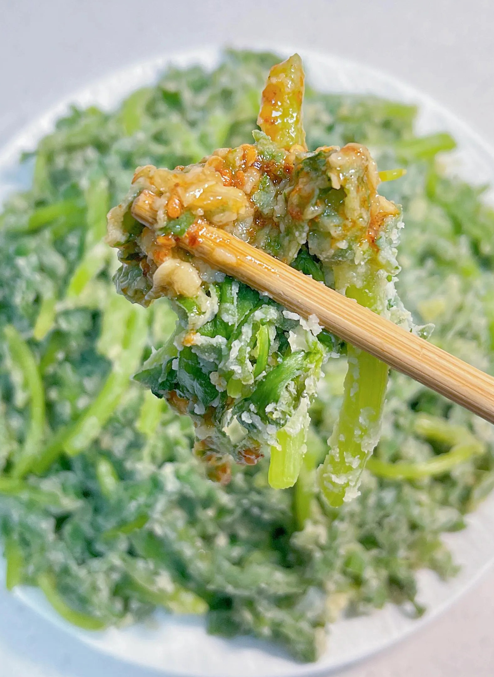 👉 做法:茼蒿洗净切段,拌少许面粉或玉米面,让叶子薄薄沾一层;上锅蒸5分钟;调个蒜泥汁:蒜末+生抽+醋+香油,蘸着吃。