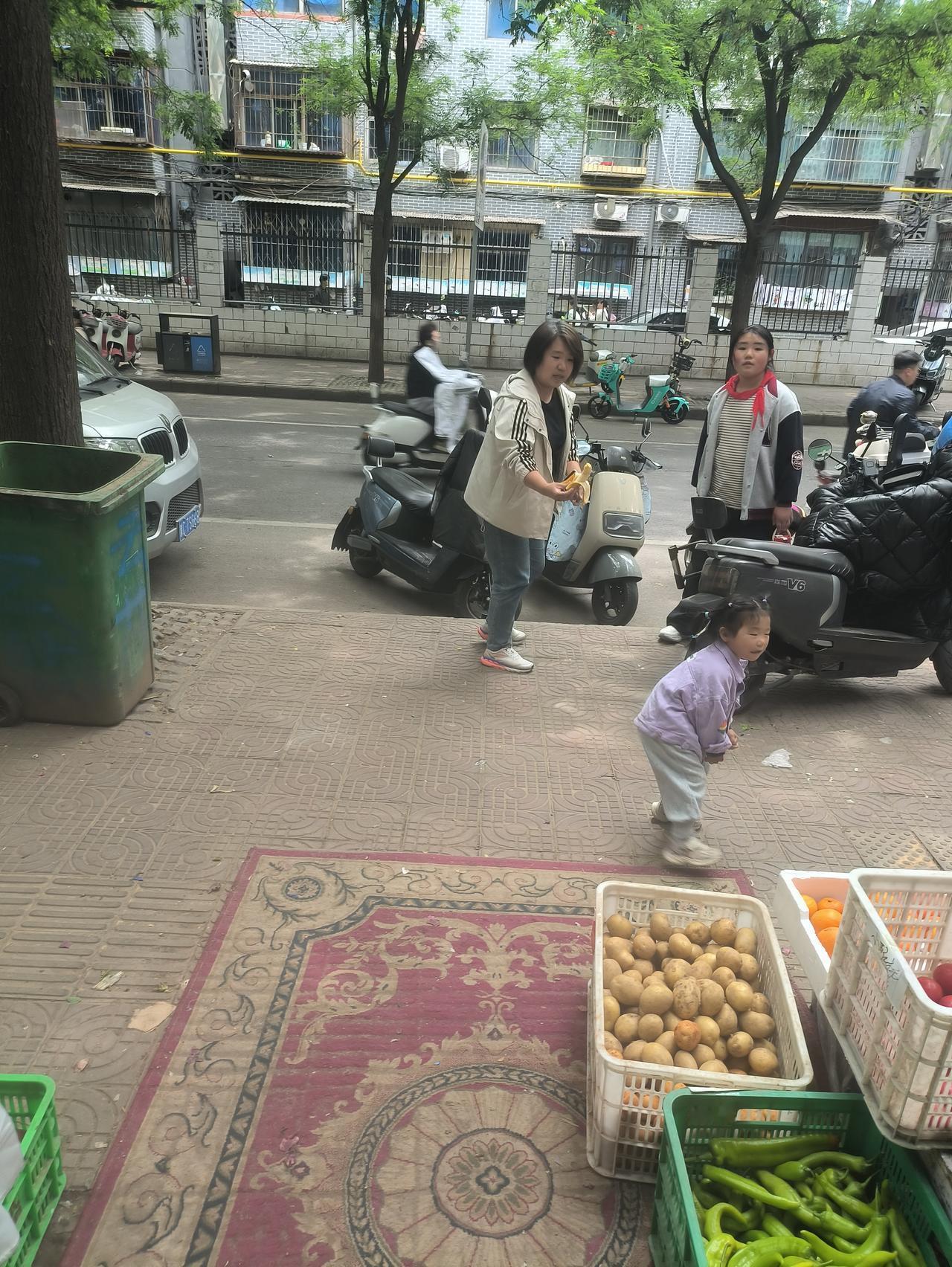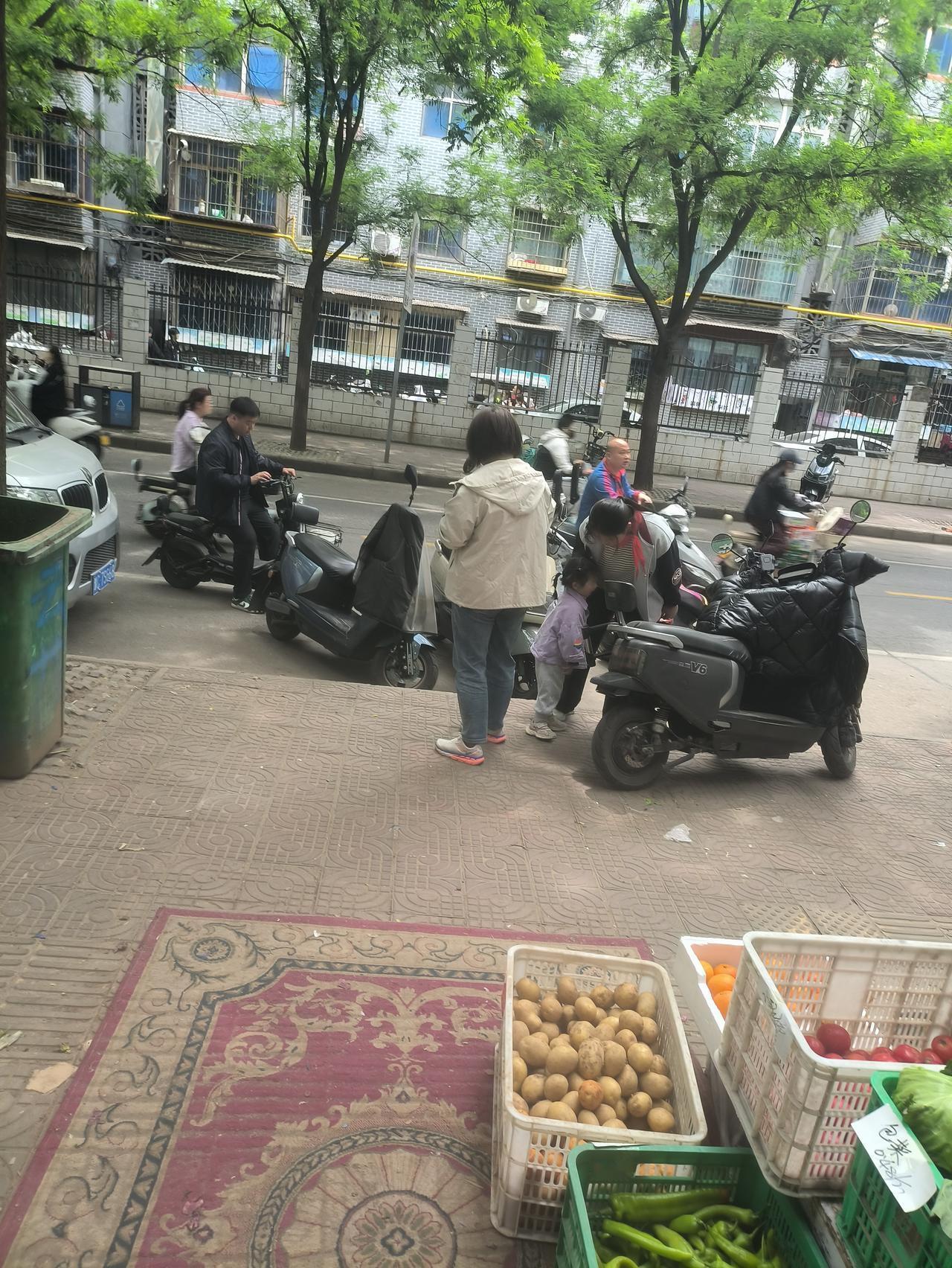 孩子哭闹,她扫码付完就匆匆骑车离开。