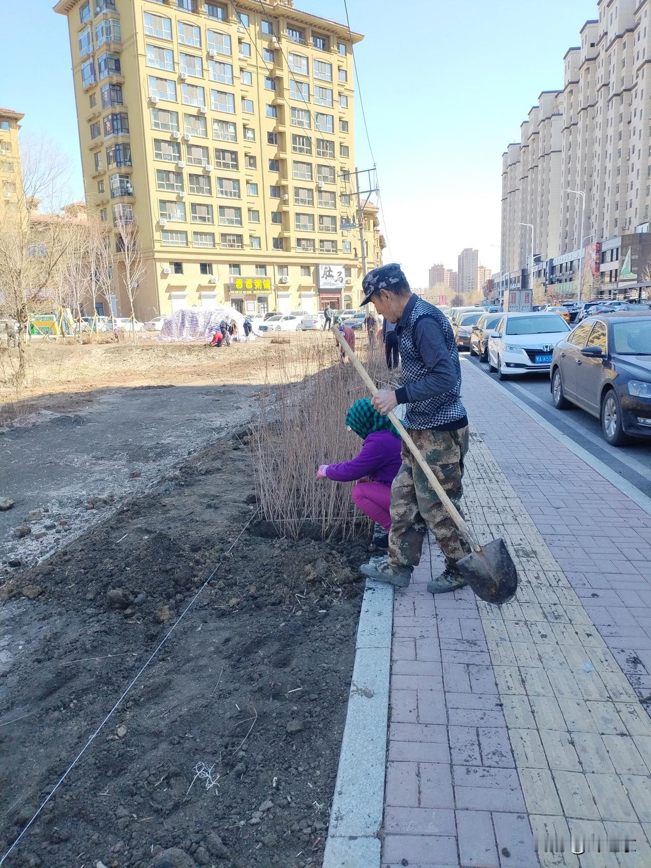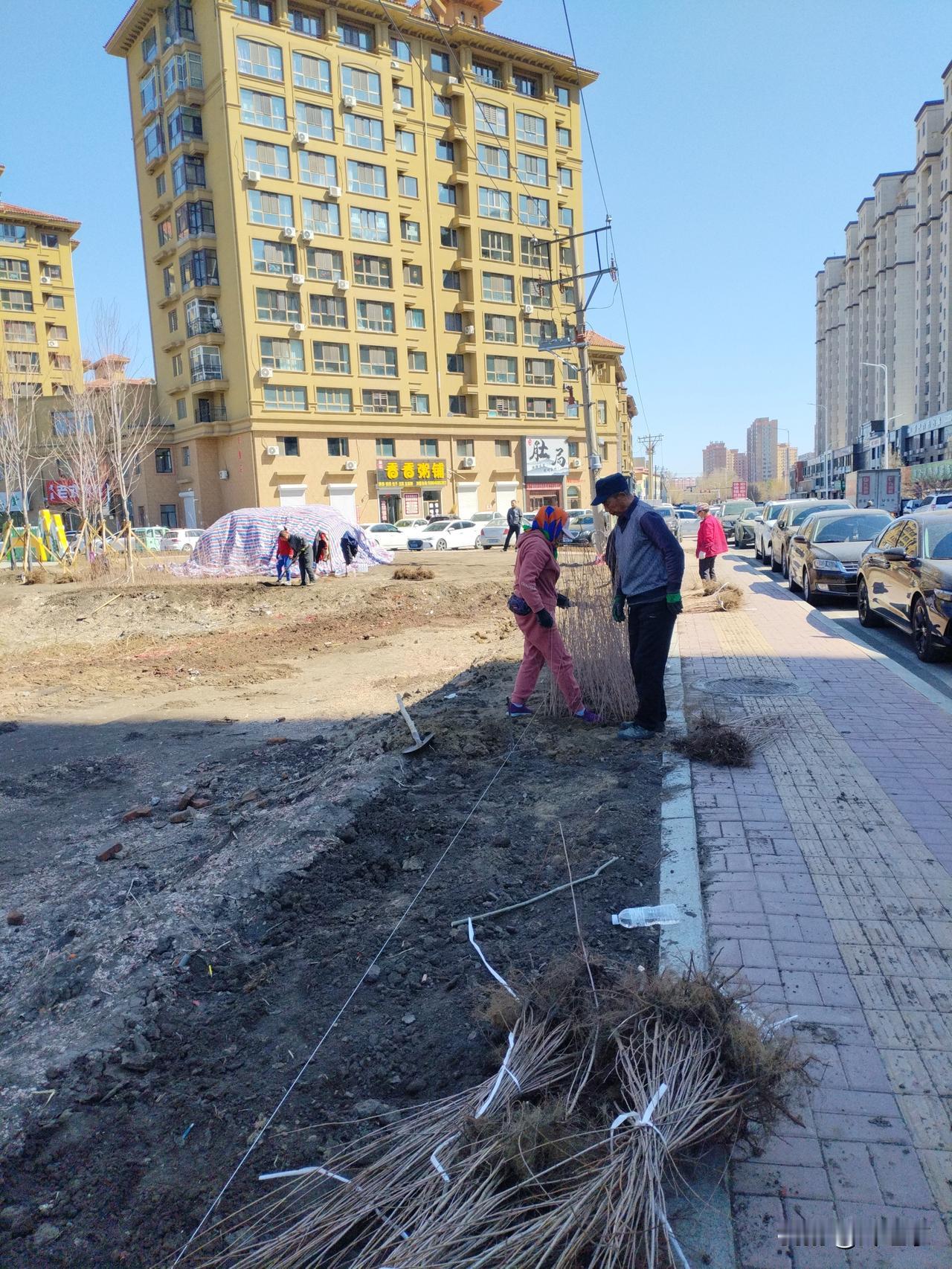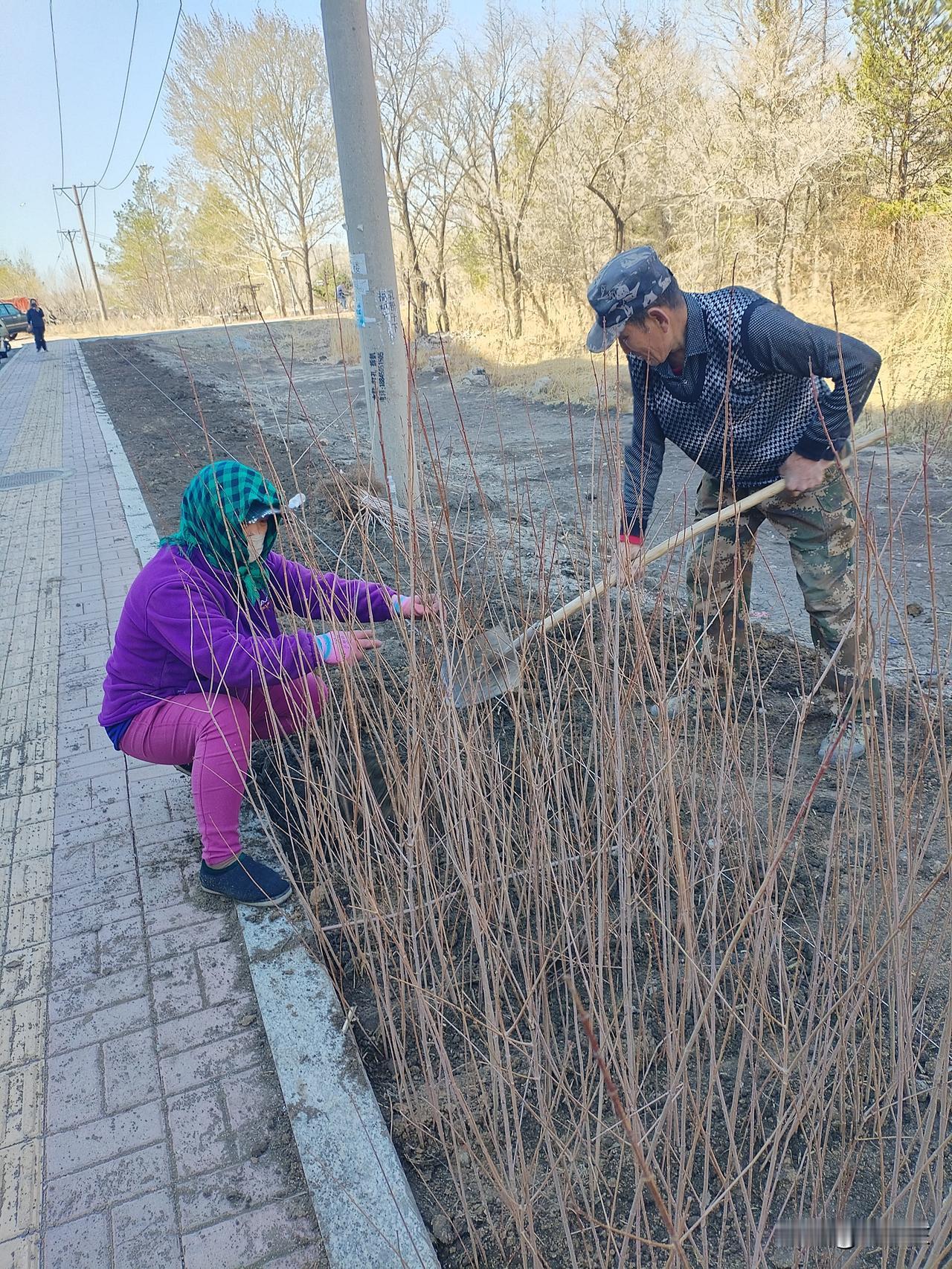 从南到北栽树苗。