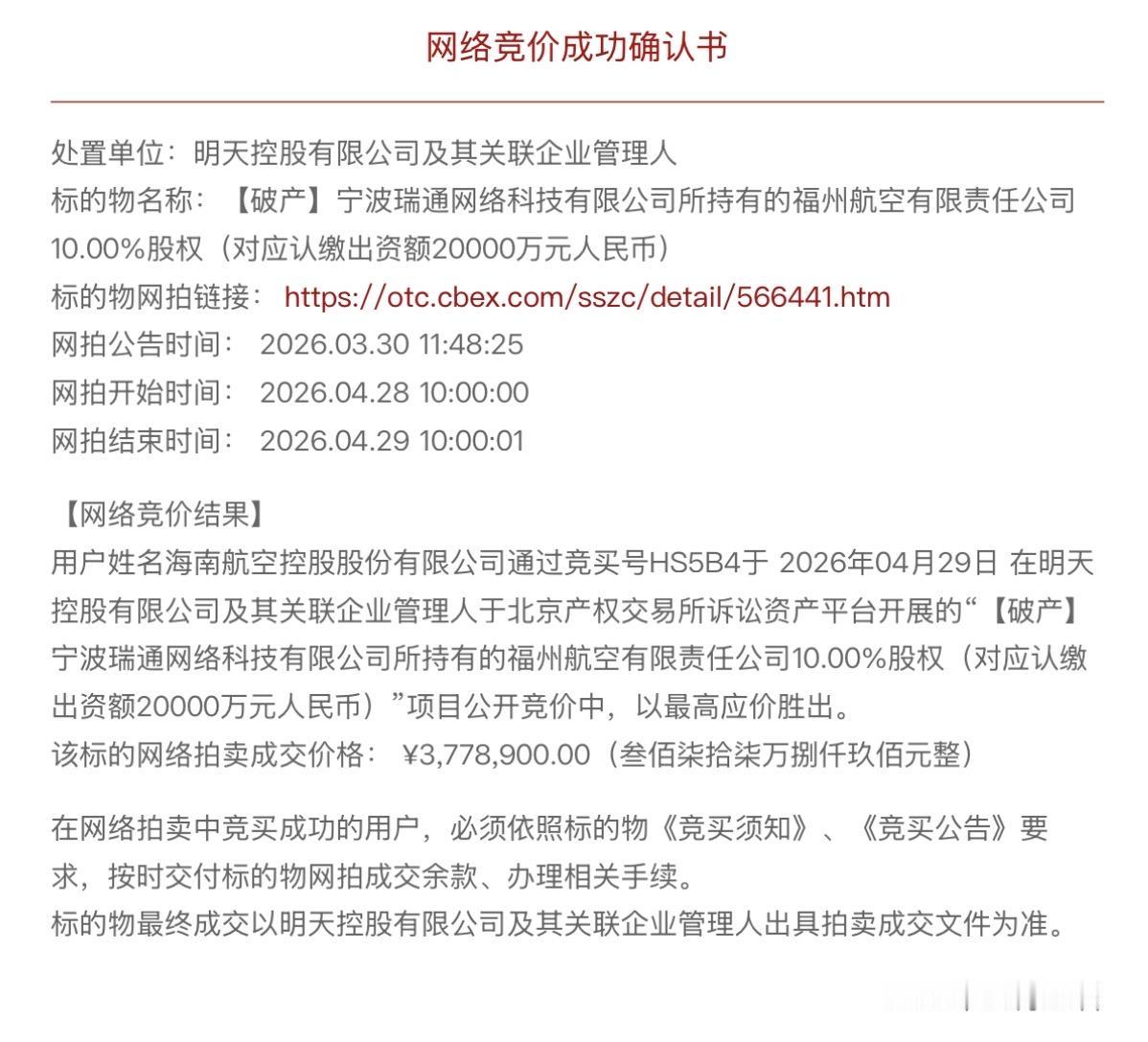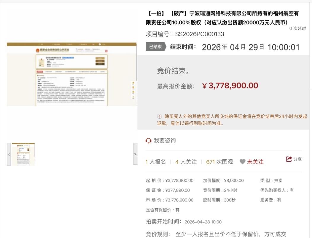 福航股权尘埃落定:海航增持至绝对控股,收购原股东宁波瑞通10%法拍股权。