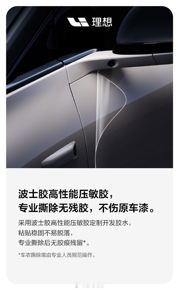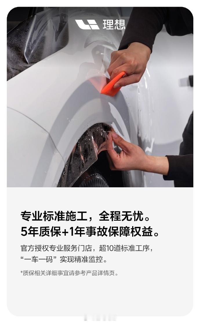 理想汽车 定制隐形车衣也上线了5 年质保 +1 年事故保障权益,5399 元起理