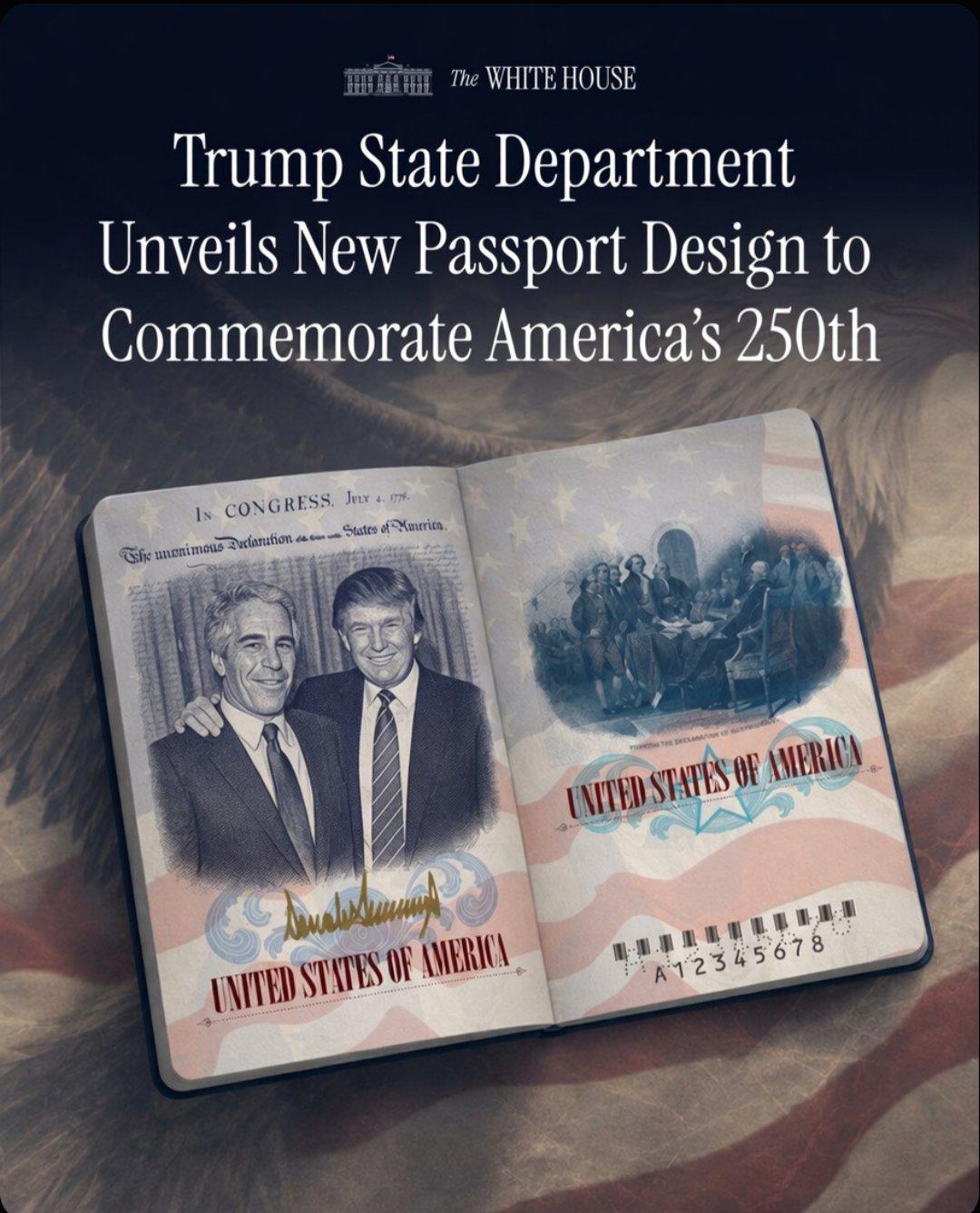 美国白宫发帖宣布,为纪念美国建国250周年,将发行印有特朗普总统肖像及金色签名的限量版护照。[捂脸]