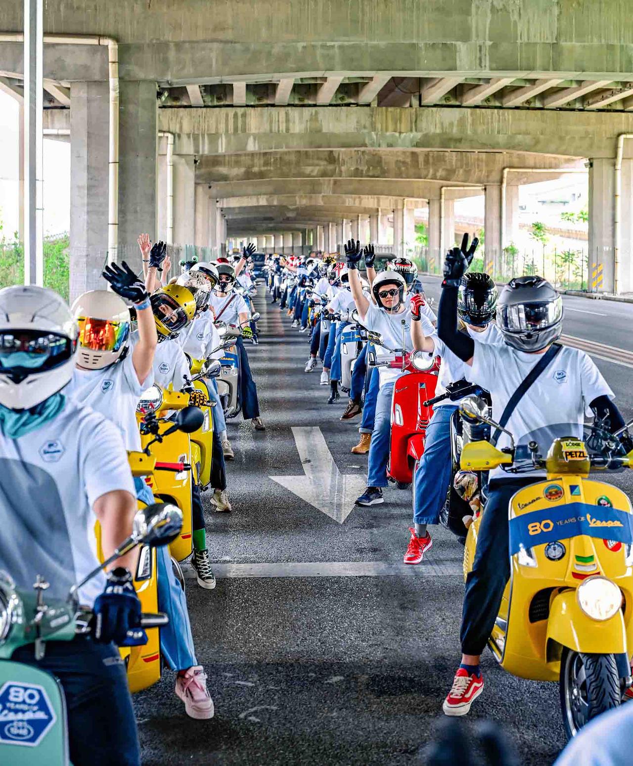 近日,Vespa在北京、济南、西安、杭州、南京、重庆、昆明、无锡八座城市同步举办80周年骑行派对。