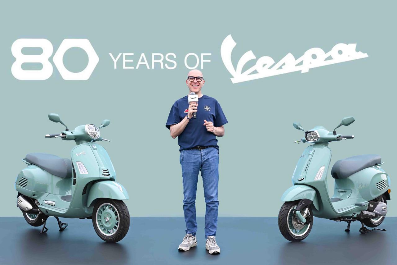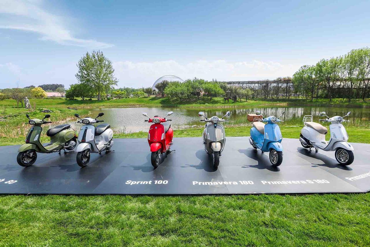 首次面向国内车友展出了80周年特别版车型,该系列基于Vespa Sprint 180与GTS 310打造,采用源自品牌历史档案的典藏绿色涂装,轮毂复刻1946年初代车型的封闭式结构,并镶有“Est. 1946”标识,挡泥板处点缀专属徽章。