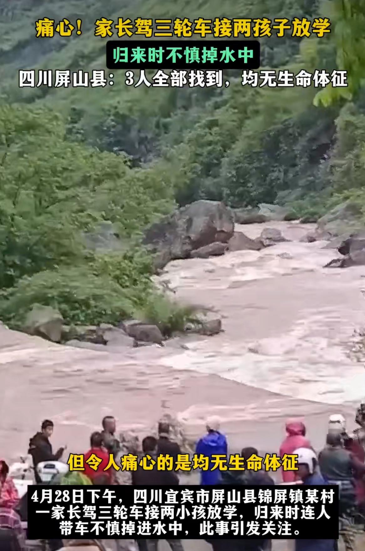 四川省宜宾市屏山县发生一起意外事故,一名家长驾驶三轮车接两名孩子放学回家途中不慎掉进溪沟,最终3人不幸身亡,事件曝光后引发众多网友关注。