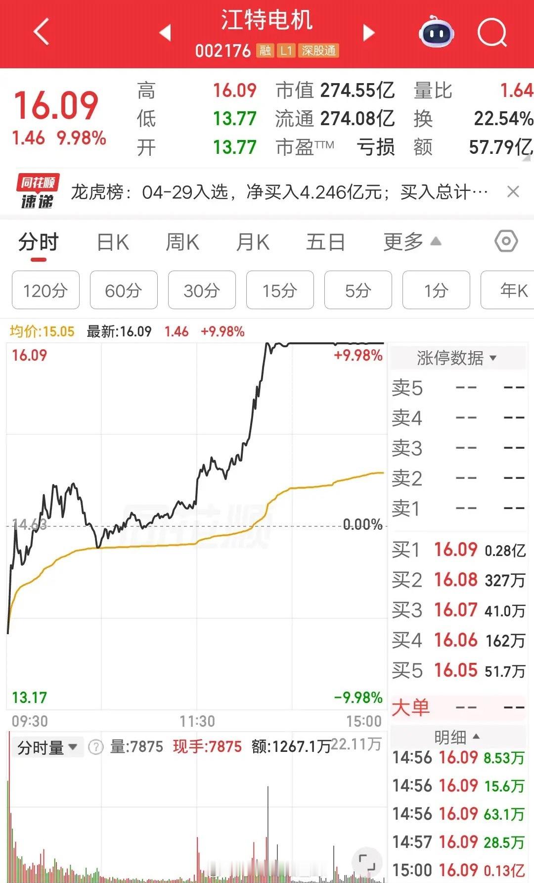 一位陕西的股民,割了方正电机、大洋电机和卧龙电驱,满仓梭哈了江特电机。在14.47元买入23万块,当天股价涨停封板,持仓浮盈十个点,他开心的发文说“明天再来一个涨停,就回本了😆”。他一直看好电机板块,觉得机器人电机是未来的增量赛道,市场资金会反复炒作的。于是在17.15元买了9万多方正电机,没想到买完之后,股价就开始下跌了。止跌企稳后,一直横盘运行,他被套了20几个点。他还买了卧龙电驱和大洋电机,心想也不知道哪个先涨,干脆开超市多买几只。把先涨起来的卖掉,换到还没涨的不就行了。想得到挺美,可事与愿违,三个票都亏了20几个点。捂了几个月了,被套的太煎熬了。盘前他看到江特电机发布了一季报,净利润亏了1.796亿,同比骤降316.92%,心想股价肯定要跌停了。结果开盘后逆势拉升,他觉得主力要搞事情了,于是一键清仓卧龙电驱,大洋电机和方正电机,一把梭哈江特电机。目前看是做对了,后面就不得而知了。