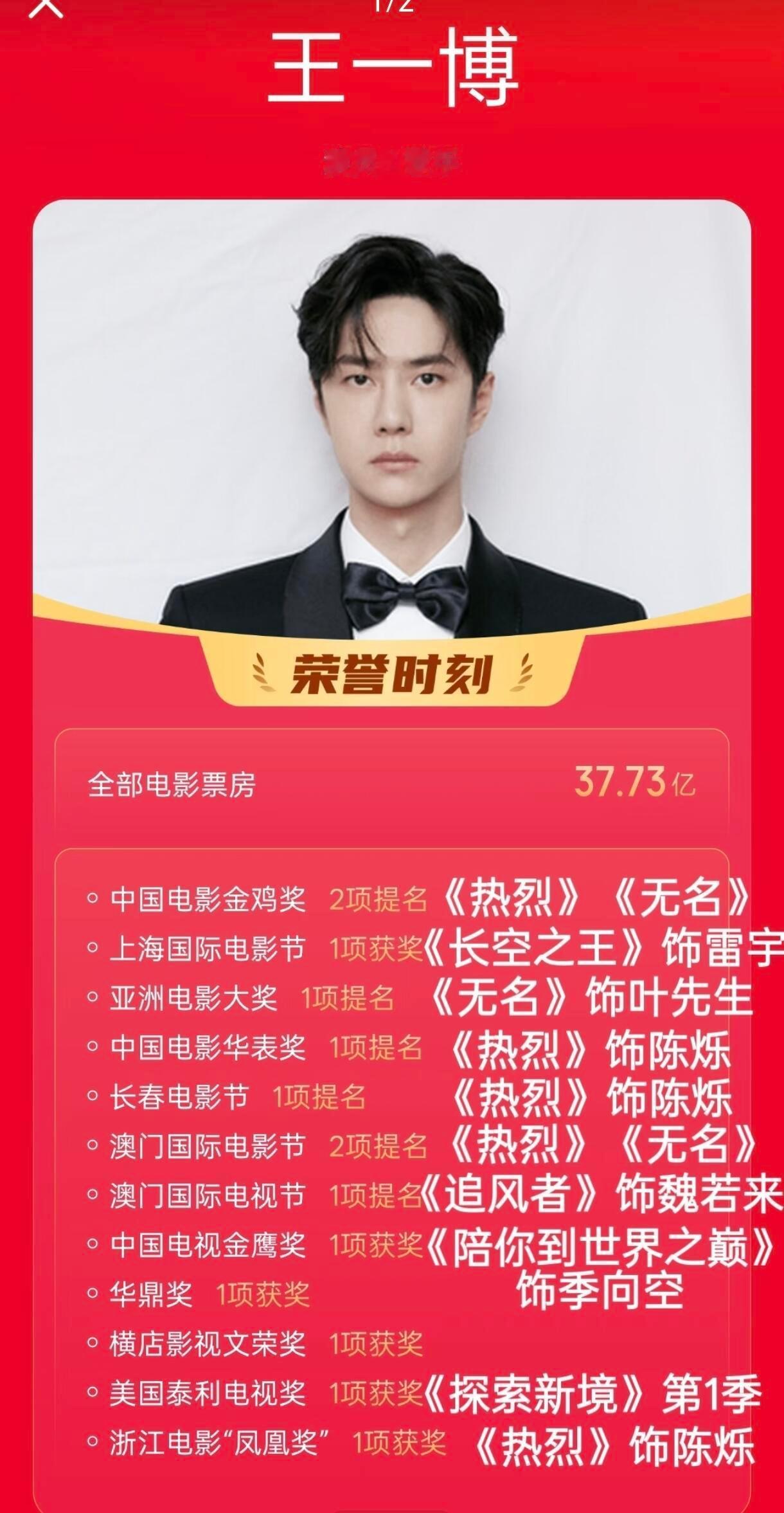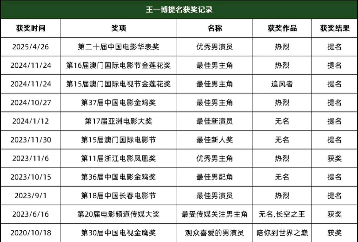 王一博获得的奖项及提名多是主流奖项,非平台、地方、盛典之夜大赏等奖项