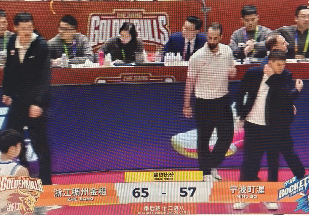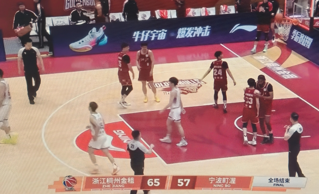 CBA12进8的一场浙江德比,浙江稠州队主场对阵宁波队。本场比赛双方都注重防守,得分都非常低,两个队全场得分都没有上70分,最终稠州队以65-57取得胜利。