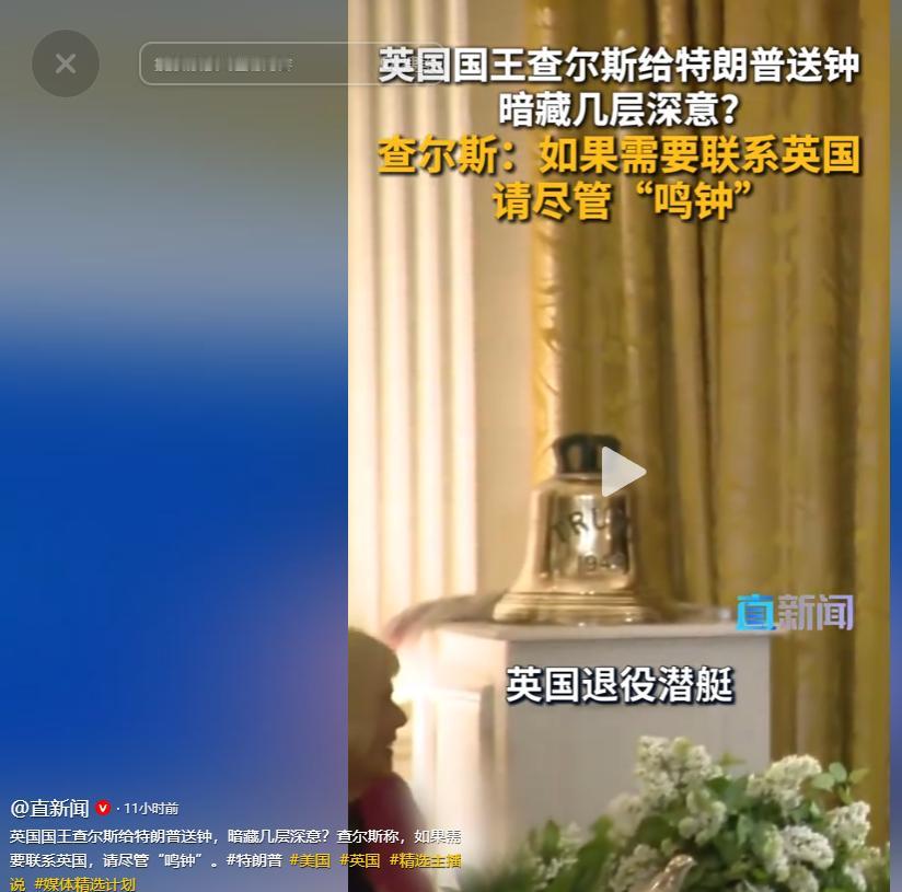 查尔斯在赠送礼物时说,愿这口钟成为英美两国共同历史与灿烂未来的见证。紧接着,他话锋一转,说出了那句被全球媒体反复引用的话:"如果哪天需要联系我们,尽管 ' 鸣钟 '。"