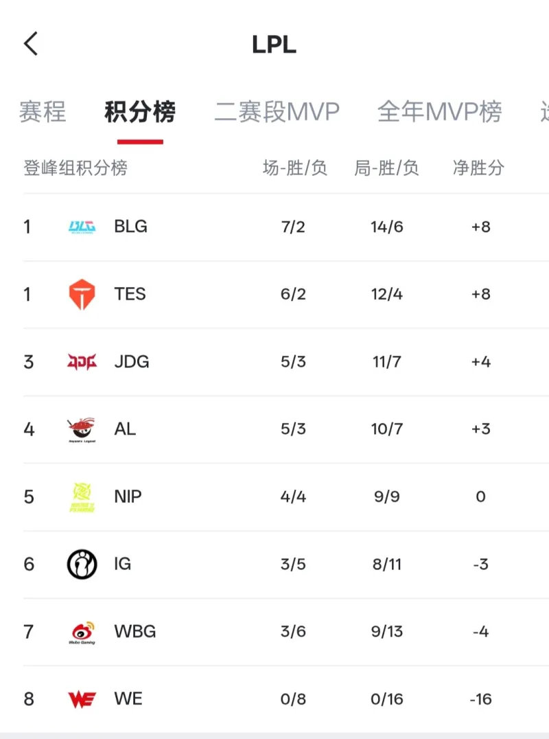 BLG夺回LPL登峰组第一2026LPL第二赛段BLG战胜WE