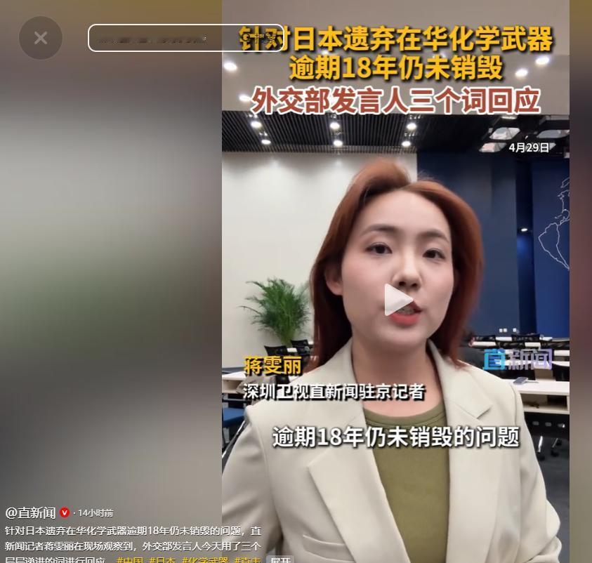 值得注意的是,禁止化学武器组织总干事阿里亚斯也曾公开表示,"只有全部日遗化武完成销毁,' 无化武世界 ' 才会到来"。