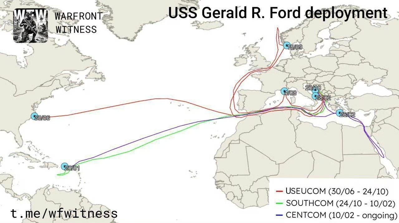 期间,“福特”号先后参与对委内瑞拉和伊朗的军事行动,并多次延长任务周期,导致舰员长期处于高强度战备状态,士气低迷。3月12日,舰尾洗衣房发生火灾,持续燃烧超30小时,造成3名水兵受伤、200余人因吸入浓烟接受治疗,约600个住舱被毁,严重影响后勤与作战能力。事故后,该舰曾赴希腊克里特岛和克罗地亚斯普利特港进行临时维修,并于4月初短暂重返红海执行防空与反导任务。
