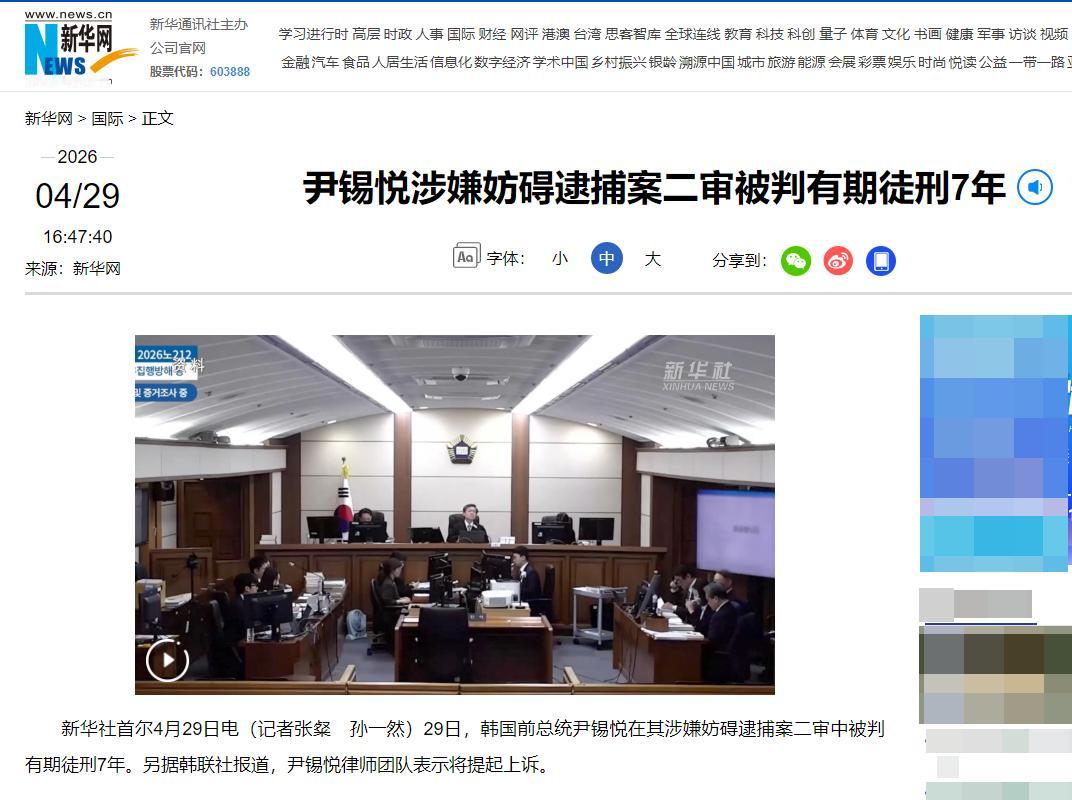 尹锡悦,判了!当地时间4月29日下午,韩国前总统尹锡悦二审判决出来了,直接把之前的5年,改成了7年。