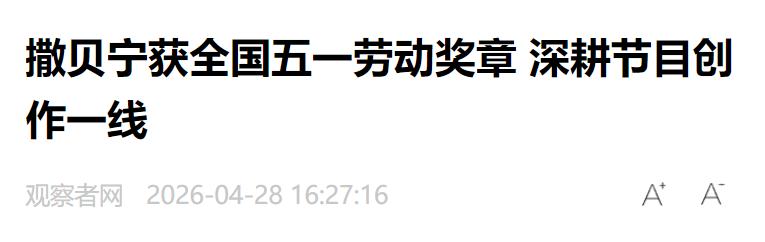 信源:撒贝宁获全国五一劳动奖章 深耕节目创作一线 观察者网 2026-04-28
