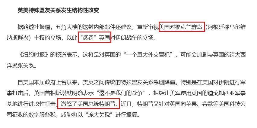 2026年4月24日,路透社曝光了一份五角大楼内部邮件,里面有个“惩罚盟友”小本本,其中针对英国的那条,差点让阿根廷人笑出声:重新评估美国对英国马岛主权的支持立场。