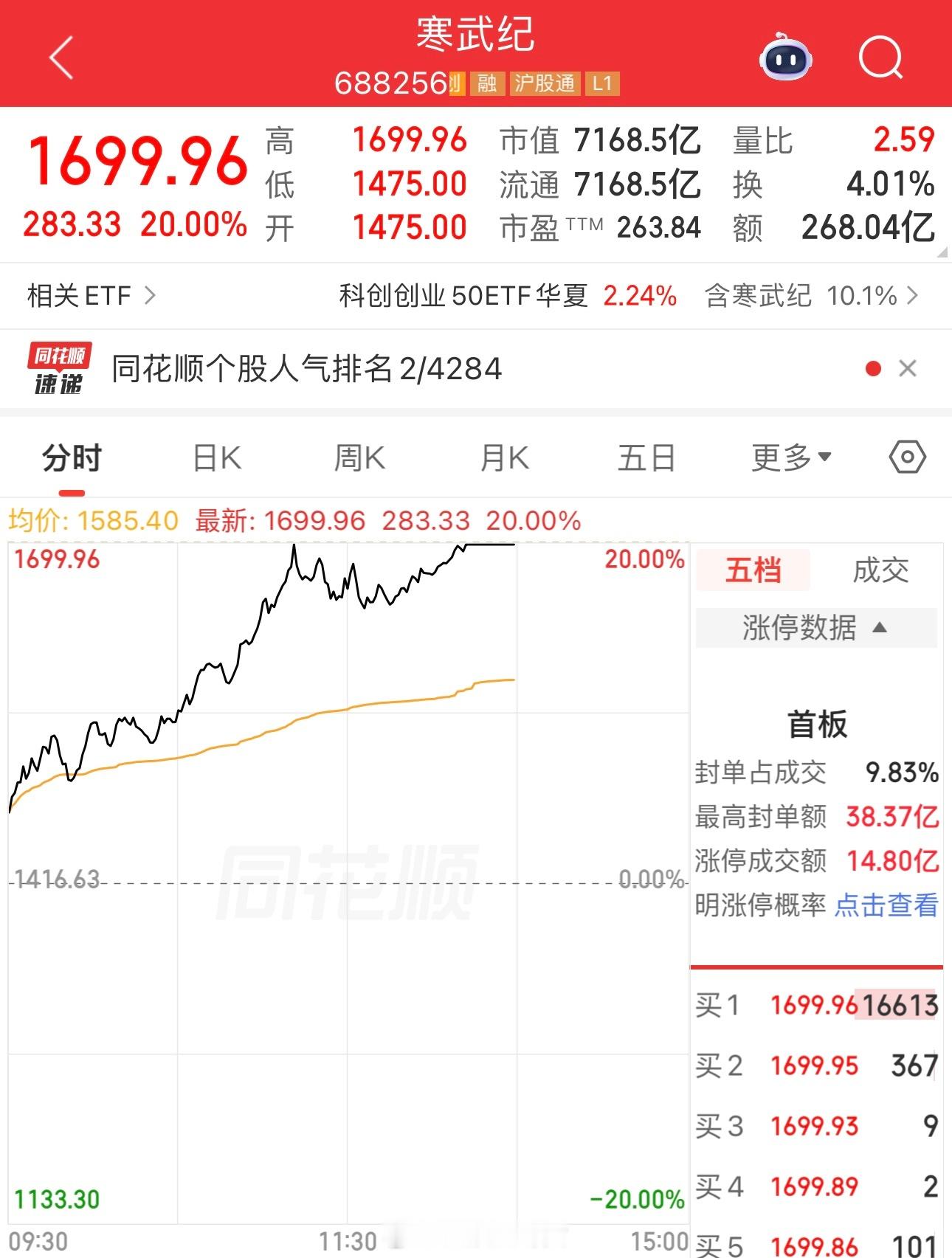 A股新晋股王寒武纪寒武纪今天不仅重回A股股王,还20cm封板了…另外A股史上第九
