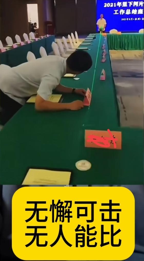 无懈可击,无人能比! 以前会场布置为了做到整齐划一,用尺子量,拉