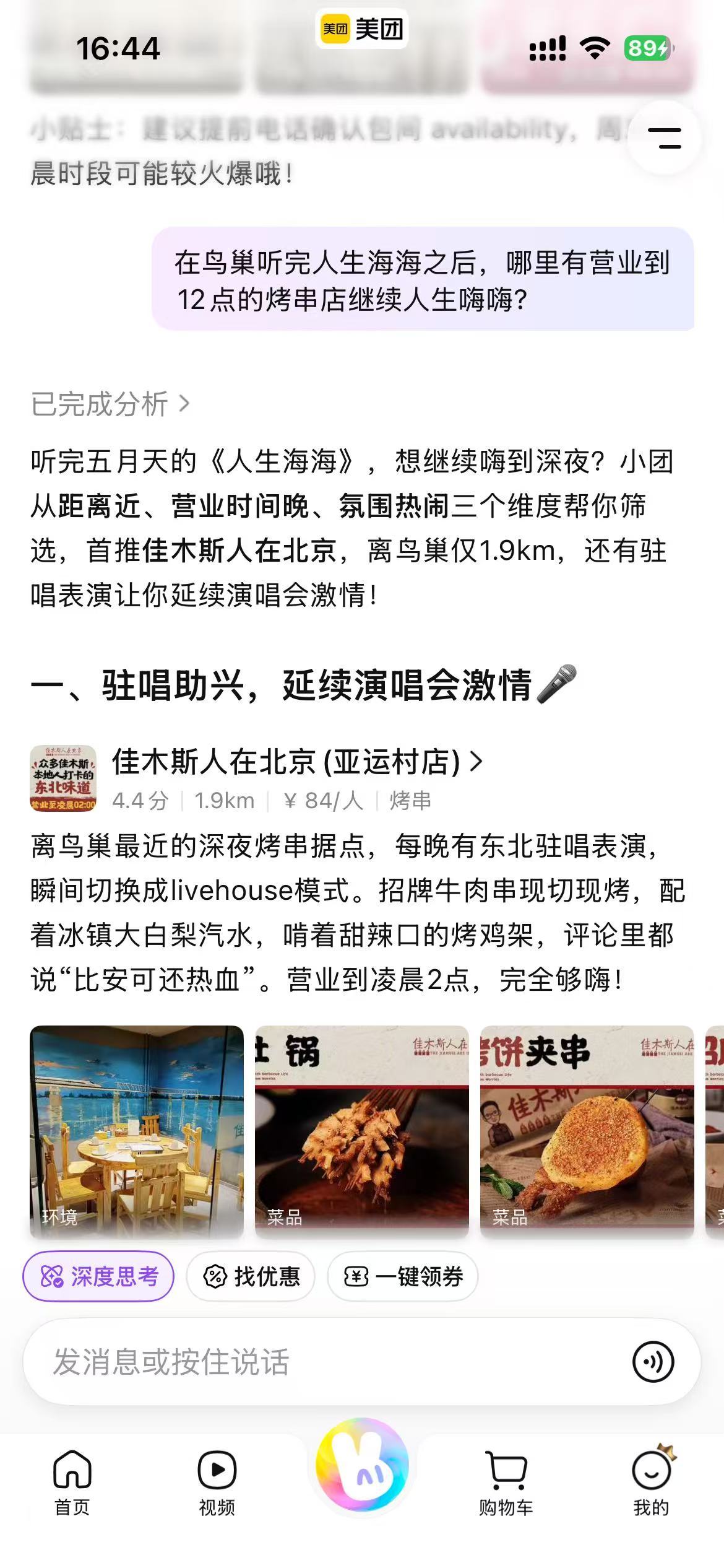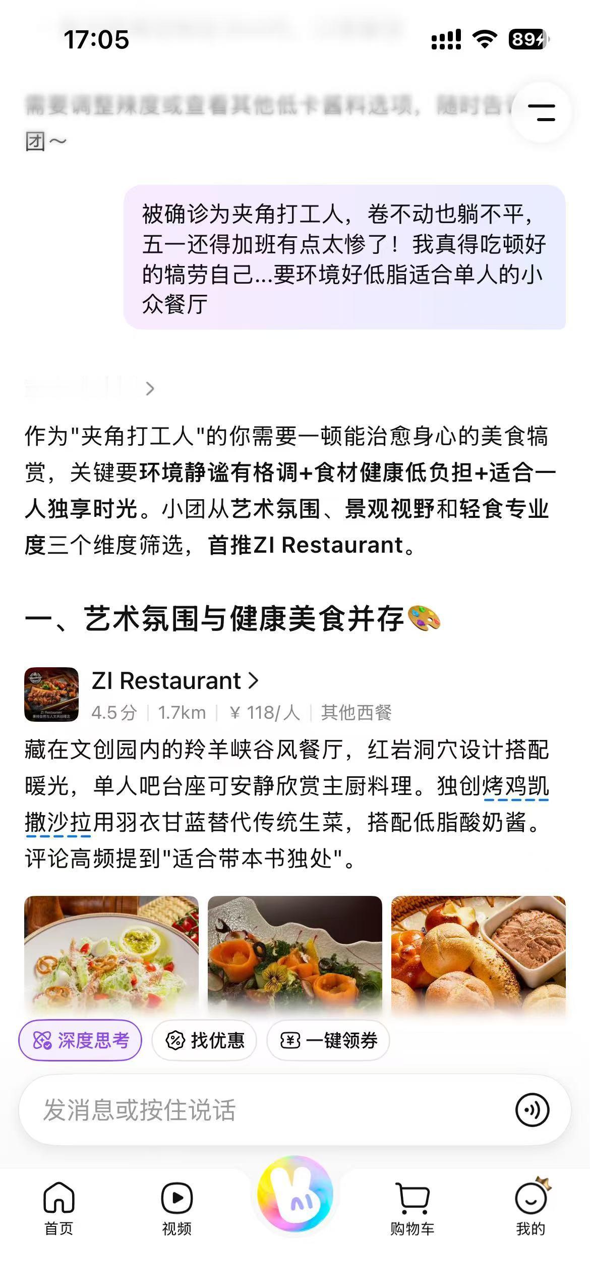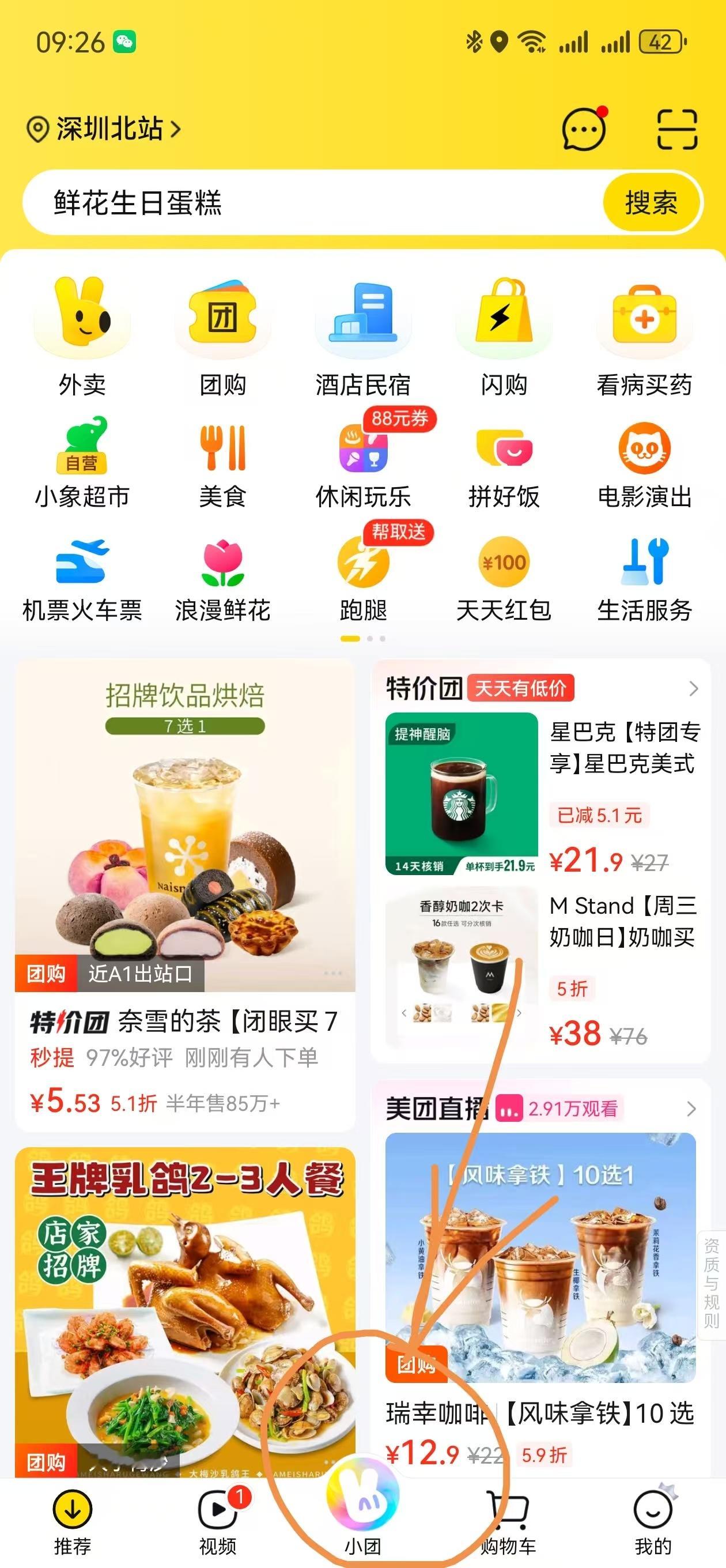 不小心触发了真能解决生活问题的AI 今天上午要出差,到深圳北站坐高铁,因为需要等人一起同行,我就提前出发了,到北站发现还有点早,随手打开了平时常用到的美团,不小心发现了一新东西,什么时候上线的小团功能啊?