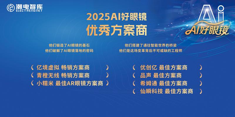 12月17日,由潮电智库主办,深圳市智能穿戴行业协会、华城天恩、深圳市平板显示行业协会、华强电子产业研究所共同协办的AI眼镜中国行“期末考试”峰会暨“AI好眼镜”颁奖活动在深圳圆满举行。