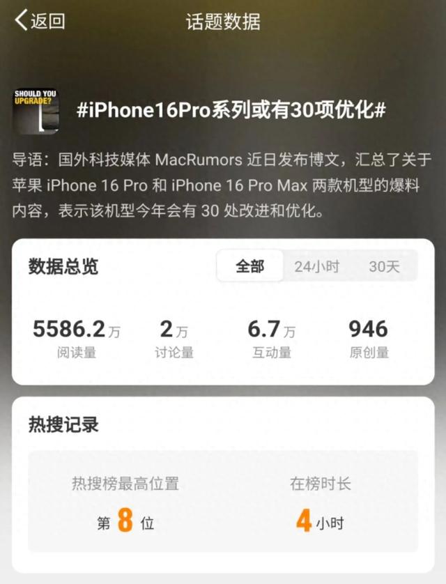 iPhone 16 Pro瞬间因为「大升级」上了微博热搜,这次号称是「30多项改进」。