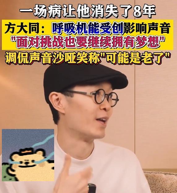 不过,在宣传新歌的时候,他也坦白了自己的病情,说是呼吸功能受损影响了他的声音。他还自嘲说,声音嘶哑可能是因为自己老了。估计这时候方大同自己也觉得有点力不从心了吧。