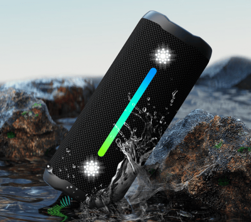 性能上,这款音箱拥有IP67防尘防水能力,即使在沙滩、河边或露营等环境中使用,也能保持稳定的表现,使用起来更安心。内部还集成了麦克风,支持蓝牙连接后直接接听电话,通话清晰流畅,功能非常实用。