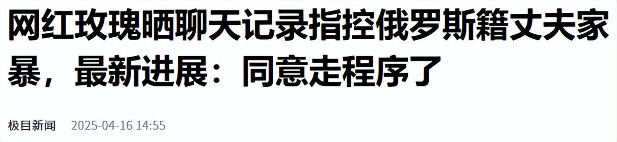 极目新闻2025-04-16网红玫瑰晒聊天记录指控俄罗斯籍丈夫家暴,最新进展:同意走程序了