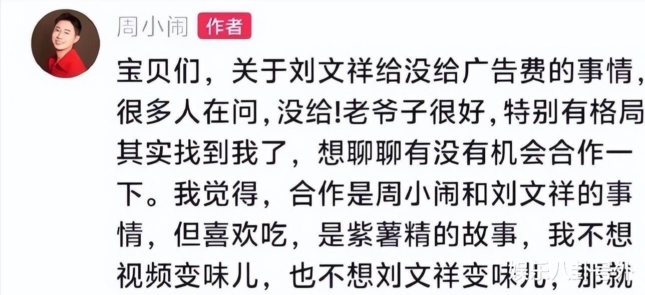 除了美食打卡,不止是我,相信全网最关心的问题还是:刘文祥给周小闹付广告费了吗?