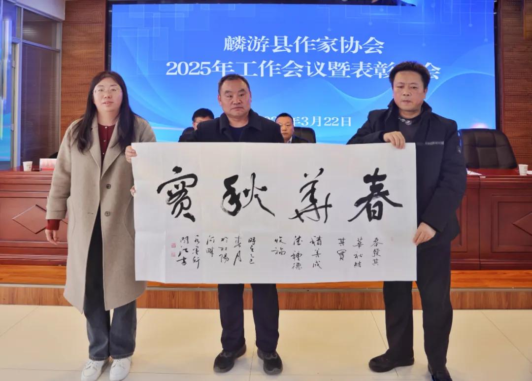 会上,对2024年度先进工作者、优秀会员、支持协会发展先进个人以及李升平的诗歌集《耕余吟》、刘小会的散文集《春去春又来》、赵玲萍的散文集《看景》、赵峰的长篇小说《羊肉馆》、李亚萍的散文集《半亩方塘》等9部麟游作家的优秀文学作品进行了表彰。会上县书法家协会、县美术家协会分别向县作家协会赠送了书法绘画作品,传达了友谊增进了感情,为协会之间强强联合强基固本。